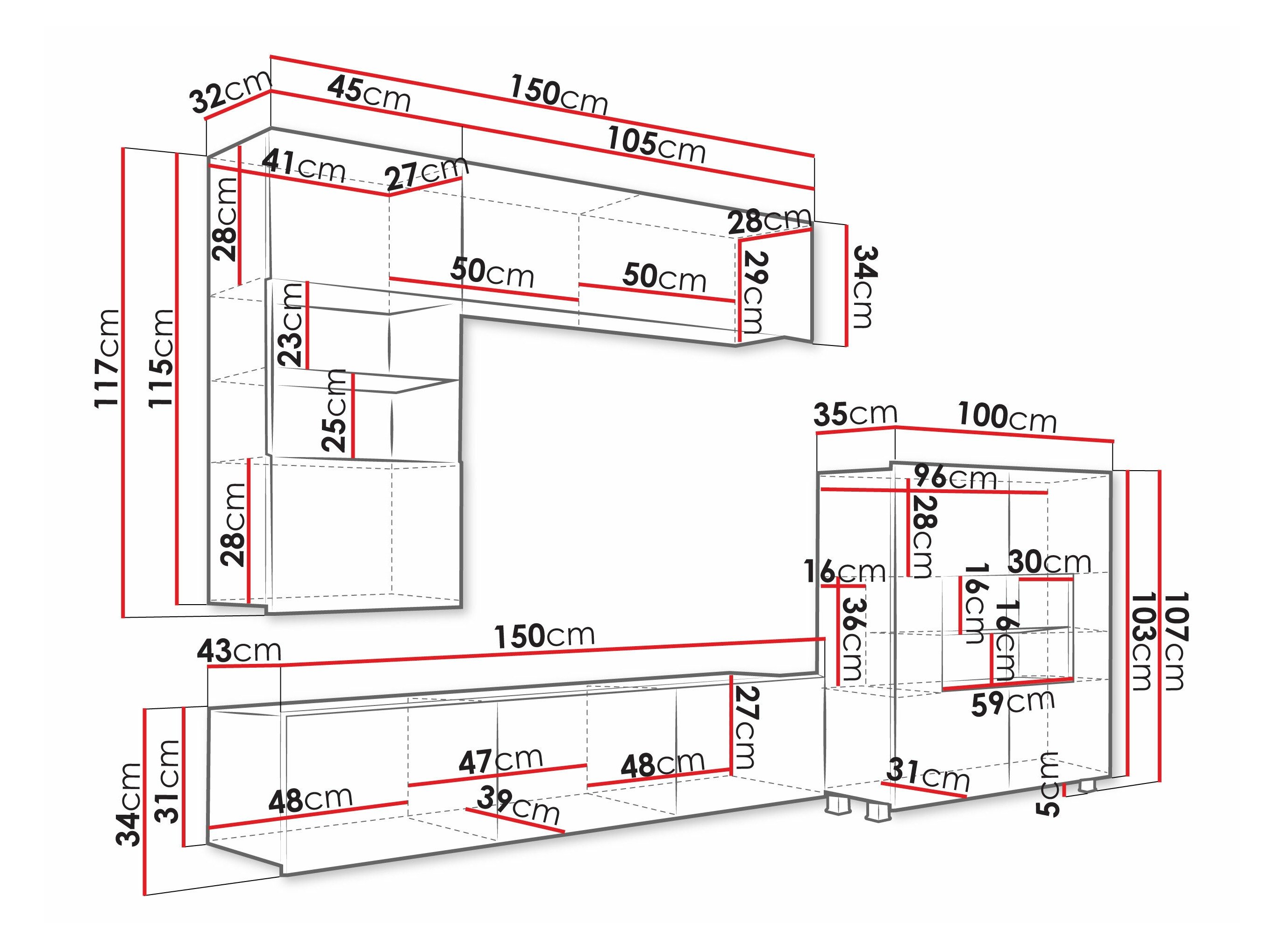 34 x 105 x 32; 117 x 45 x 35 cm