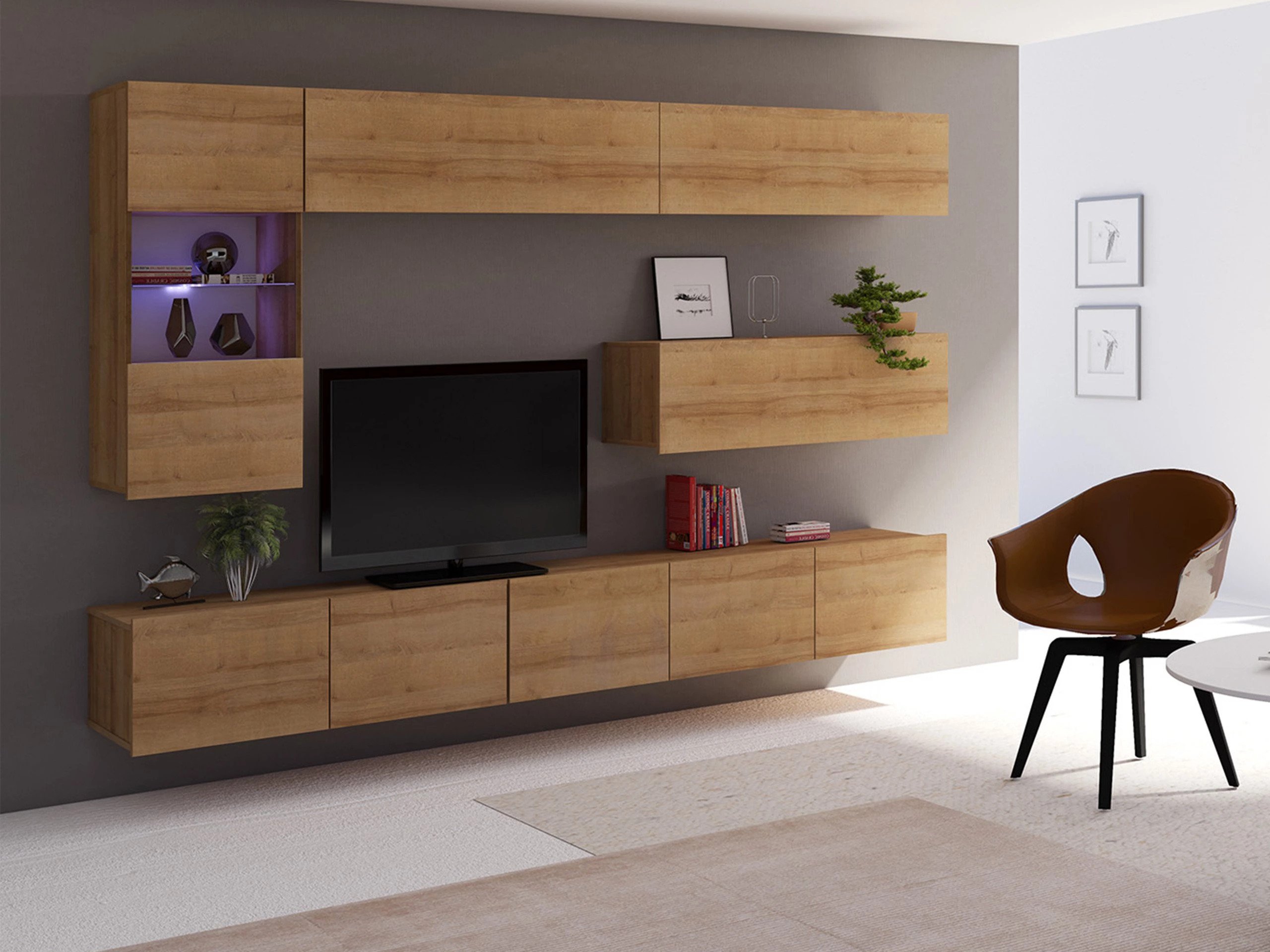 Cette collection de meubles est conçue pour s'adapter au rythme de la vie moderne, où fonctionnalité et esthétique vont de pair. Ses lignes épurées, ses formes contemporaines et ses détails subtils vous permettent de créer facilement un espace confortable et authentique où vous aurez plaisir à rentrer chez vous. La collection comprend des meubles TV, des ensembles de salon, des armoires murales, des lits et des bureaux, tous conçus avec soin pour s'harmoniser parfaitement entre eux. Ces pièces s'adaptent sans effort à différents intérieurs, offrant des solutions polyvalentes pour les espaces compacts ou formant des combinaisons audacieuses et distinctives dans les pièces plus grandes. Certains modèles sont équipés d'un éclairage LED intégré à faible consommation d'énergie, qui ajoute de la chaleur et de l'ambiance le soir. Les éléments en verre trempé améliorent à la fois la durabilité et le design, apportant une touche raffinée de caractère. Cette collection s'intègre facilement dans une variété d'intérieurs, contribuant à créer un espace de vie accueillant et élégant, un lieu où se réunir, faire une pause et simplement profiter de la vie.