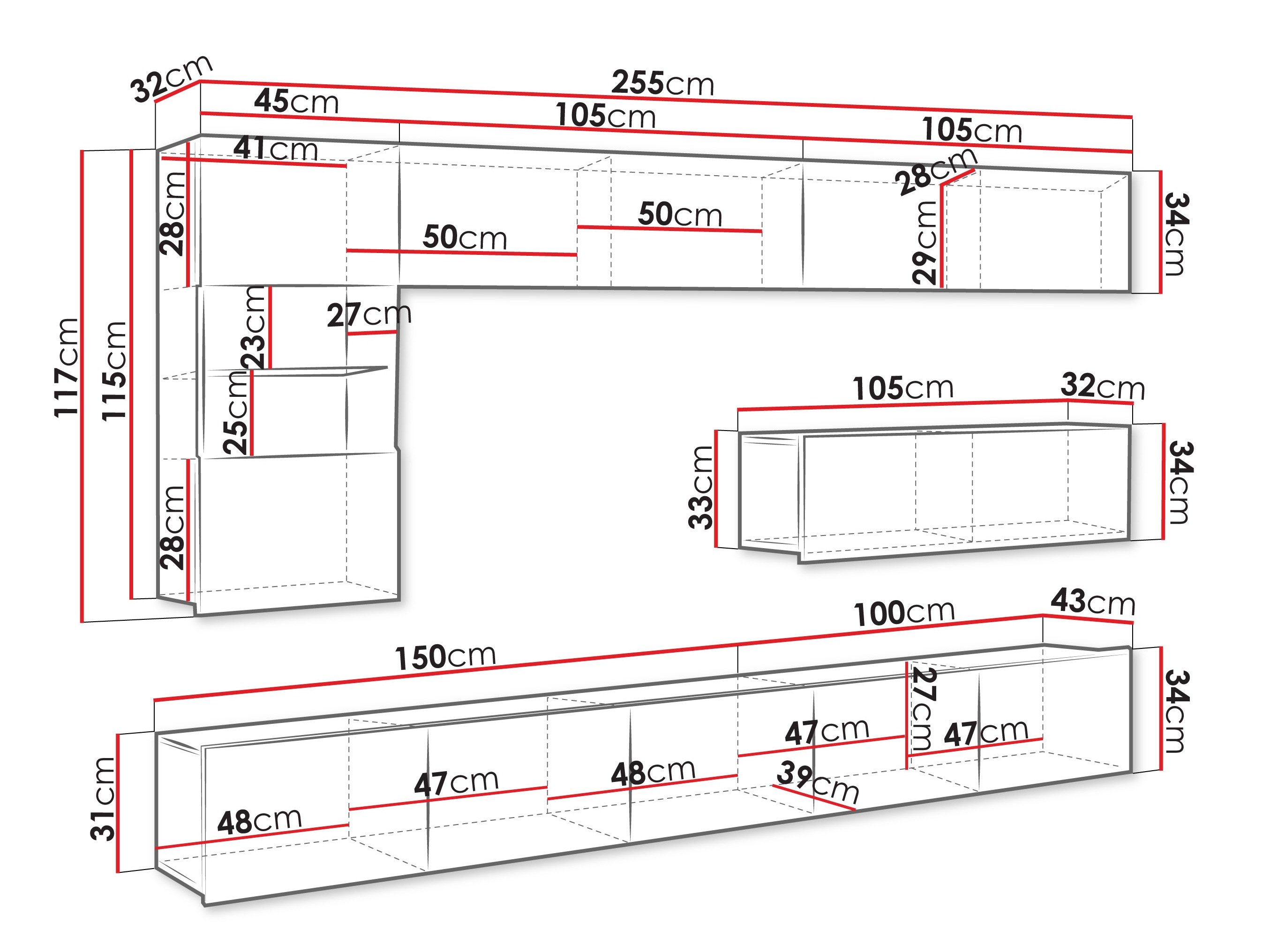 34 x 105 x 32 cm