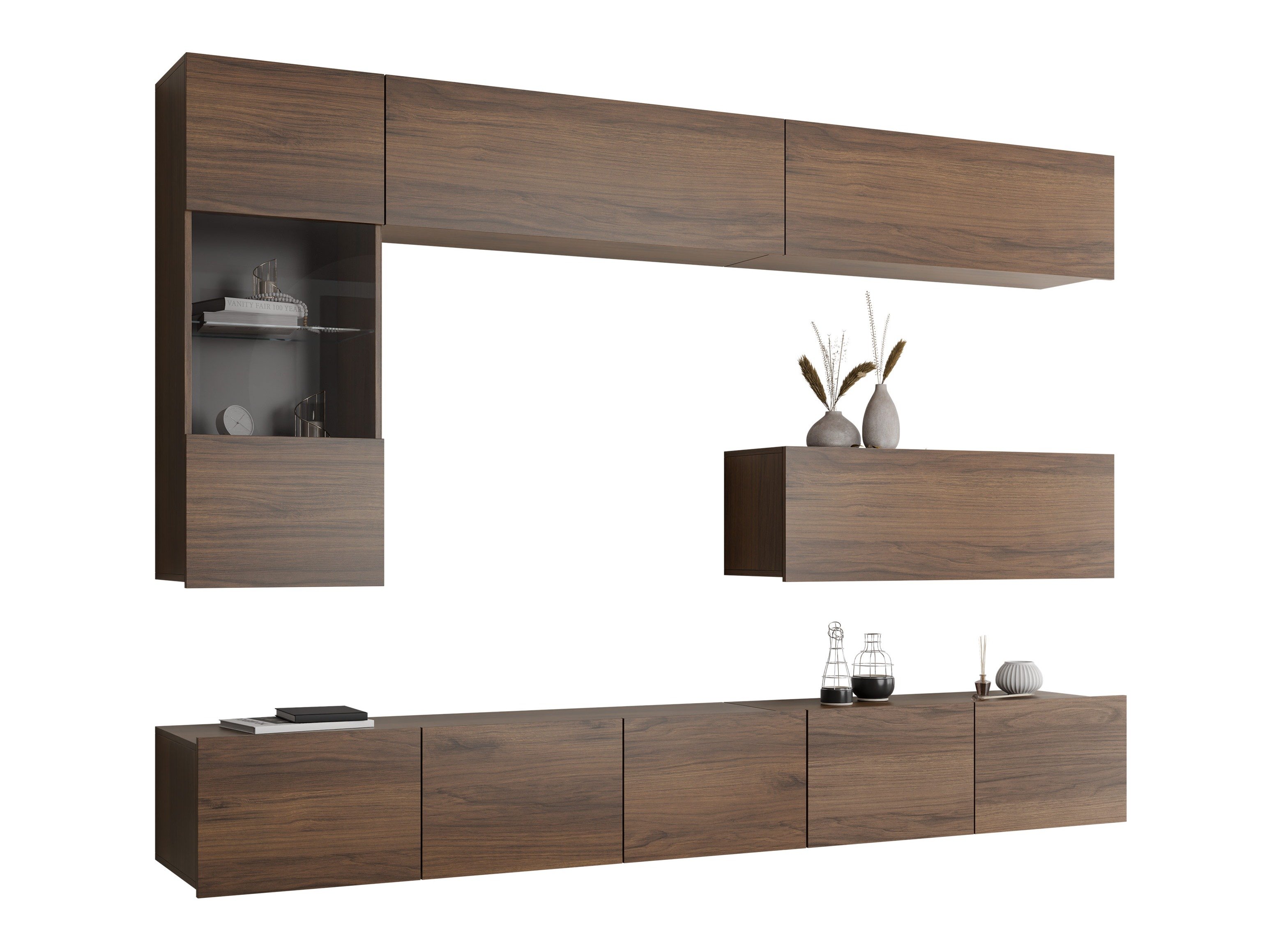 Cette collection de meubles est conçue pour s'adapter au rythme de la vie moderne, où fonctionnalité et esthétique vont de pair. Ses lignes épurées, ses formes contemporaines et ses détails subtils vous permettent de créer facilement un espace confortable et authentique où vous aurez plaisir à rentrer chez vous. La collection comprend des meubles TV, des ensembles de salon, des armoires murales, des lits et des bureaux, tous conçus avec soin pour s'harmoniser parfaitement entre eux. Ces pièces s'adaptent sans effort à différents intérieurs, offrant des solutions polyvalentes pour les espaces compacts ou formant des combinaisons audacieuses et distinctives dans les pièces plus grandes. Certains modèles sont équipés d'un éclairage LED intégré à faible consommation d'énergie, qui ajoute de la chaleur et de l'ambiance le soir. Les éléments en verre trempé améliorent à la fois la durabilité et le design, apportant une touche raffinée de caractère. Cette collection s'intègre facilement dans une variété d'intérieurs, contribuant à créer un espace de vie accueillant et élégant, un lieu où se réunir, faire une pause et simplement profiter de la vie.
