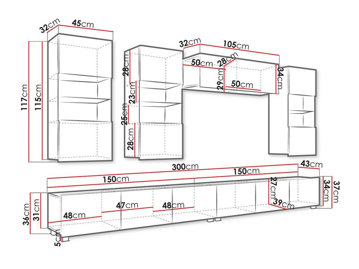 Ensemble de salon Tivdalu 109 (Blanc + Blanc brillant + Noir + Noir brillant)