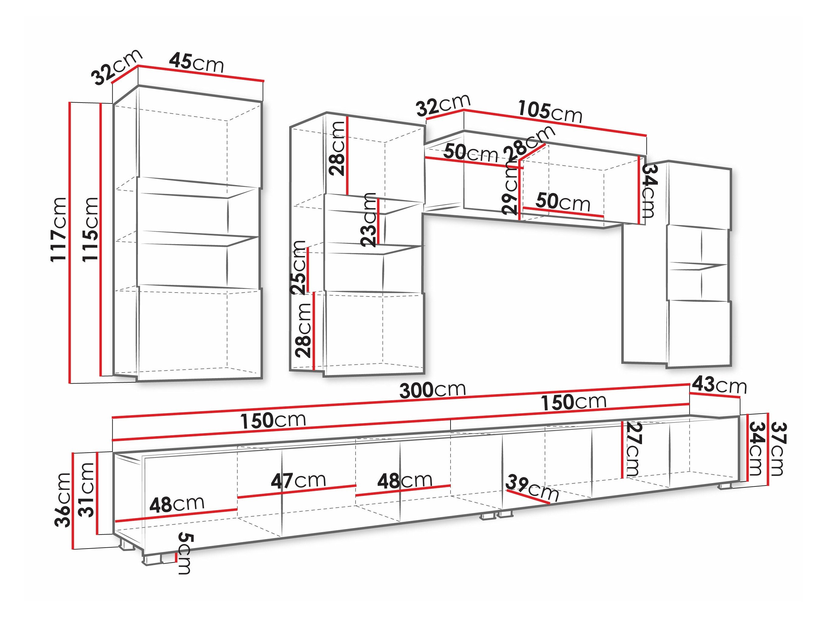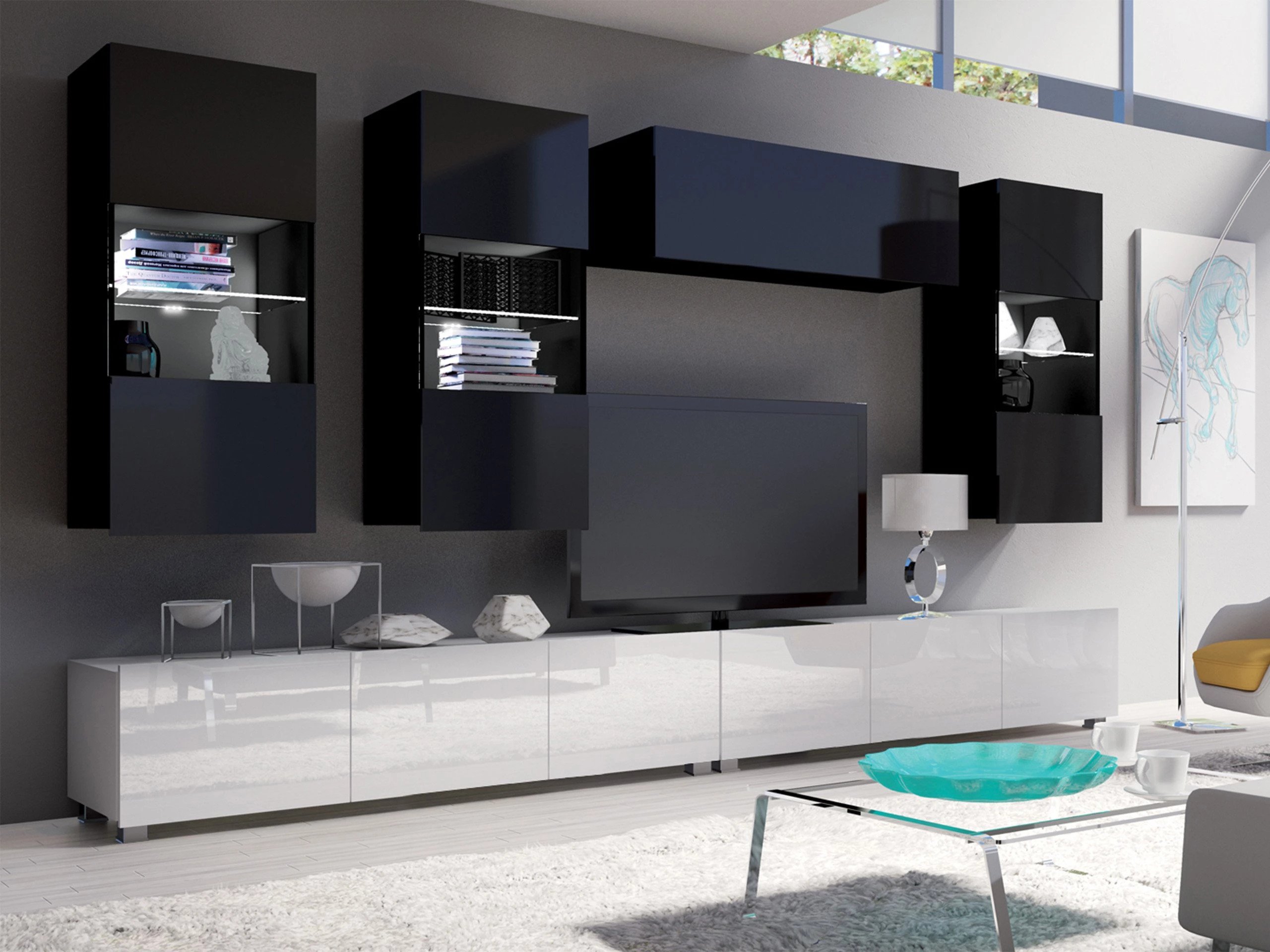 Cette collection de meubles est conçue pour s'adapter au rythme de la vie moderne, où fonctionnalité et esthétique vont de pair. Ses lignes épurées, ses formes contemporaines et ses détails subtils vous permettent de créer facilement un espace confortable et authentique où vous aurez plaisir à rentrer chez vous. La collection comprend des meubles TV, des ensembles de salon, des armoires murales, des lits et des bureaux, tous conçus avec soin pour s'harmoniser parfaitement entre eux. Ces pièces s'adaptent sans effort à différents intérieurs, offrant des solutions polyvalentes pour les espaces compacts ou formant des combinaisons audacieuses et distinctives dans les pièces plus grandes. Certains modèles sont équipés d'un éclairage LED intégré à faible consommation d'énergie, qui ajoute de la chaleur et de l'ambiance le soir. Les éléments en verre trempé améliorent à la fois la durabilité et le design, apportant une touche raffinée de caractère. Cette collection s'intègre facilement dans une variété d'intérieurs, contribuant à créer un espace de vie accueillant et élégant, un lieu où se réunir, faire une pause et simplement profiter de la vie.