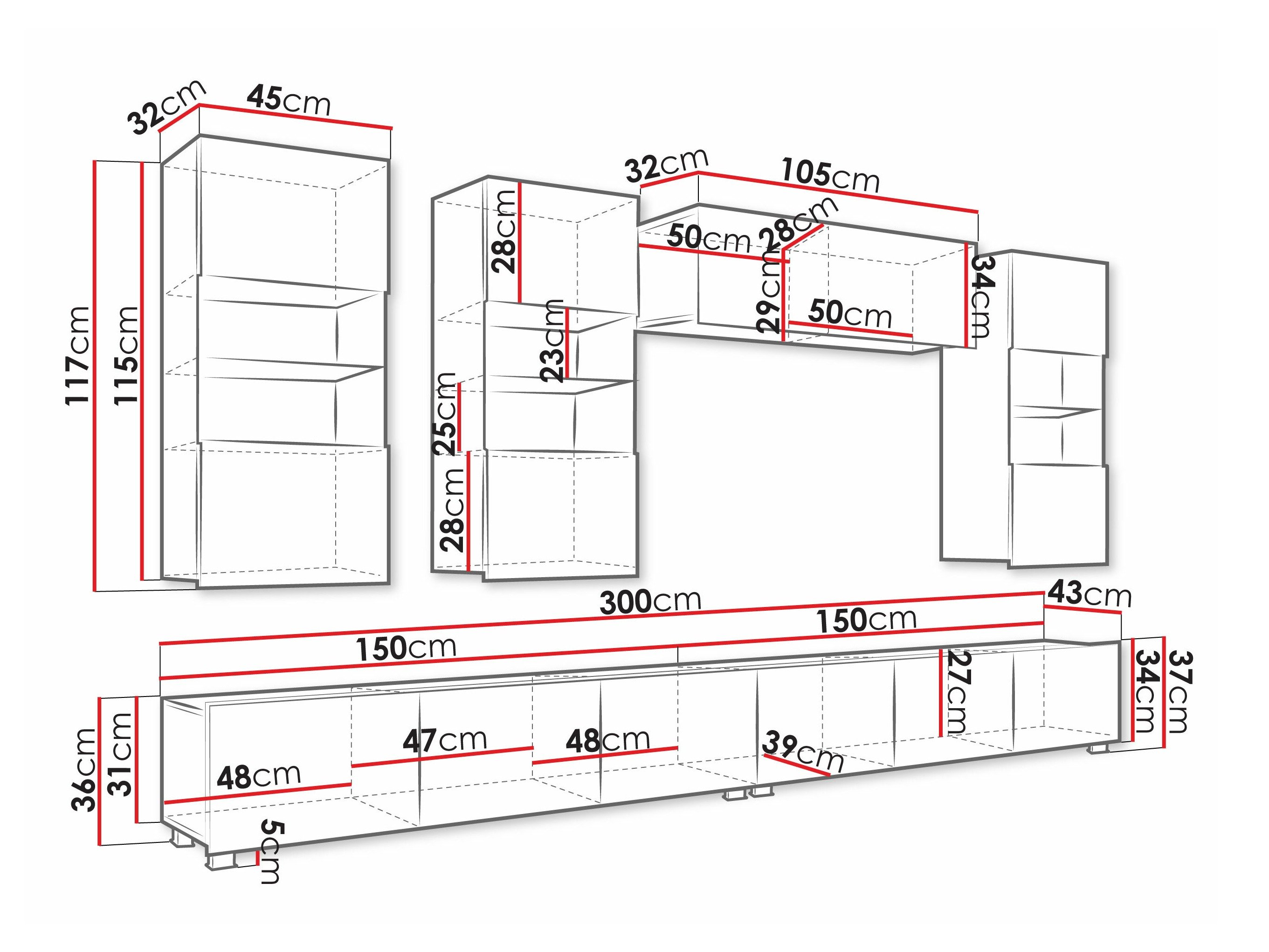 37 x 300 x 43 cm