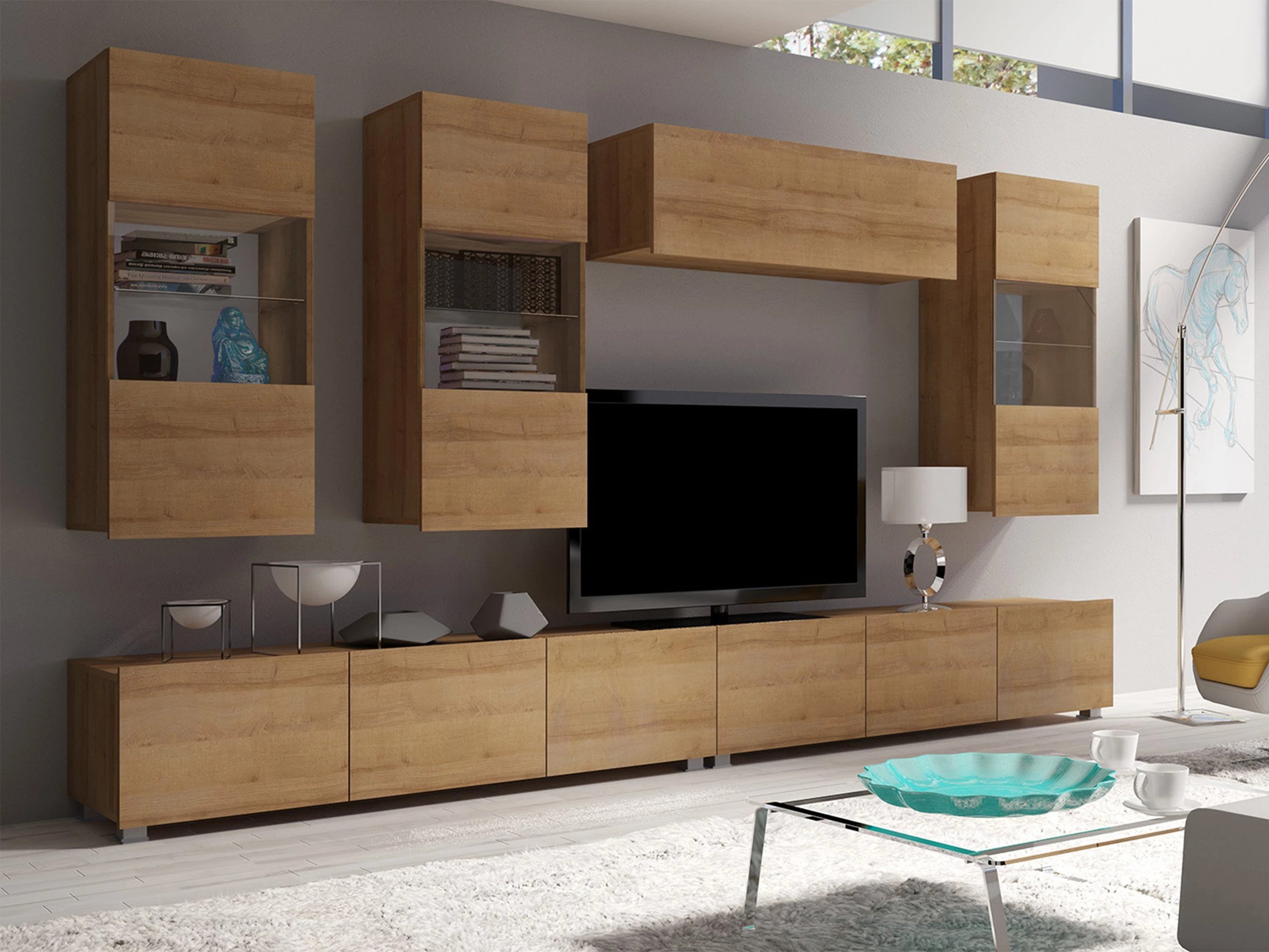 Cette collection de meubles est conçue pour s'adapter au rythme de la vie moderne, où fonctionnalité et esthétique vont de pair. Ses lignes épurées, ses formes contemporaines et ses détails subtils vous permettent de créer facilement un espace confortable et authentique où vous aurez plaisir à rentrer chez vous. La collection comprend des meubles TV, des ensembles de salon, des armoires murales, des lits et des bureaux, tous conçus avec soin pour s'harmoniser parfaitement entre eux. Ces pièces s'adaptent sans effort à différents intérieurs, offrant des solutions polyvalentes pour les espaces compacts ou formant des combinaisons audacieuses et distinctives dans les pièces plus grandes. Certains modèles sont équipés d'un éclairage LED intégré à faible consommation d'énergie, qui ajoute de la chaleur et de l'ambiance le soir. Les éléments en verre trempé améliorent à la fois la durabilité et le design, apportant une touche raffinée de caractère. Cette collection s'intègre facilement dans une variété d'intérieurs, contribuant à créer un espace de vie accueillant et élégant, un lieu où se réunir, faire une pause et simplement profiter de la vie.