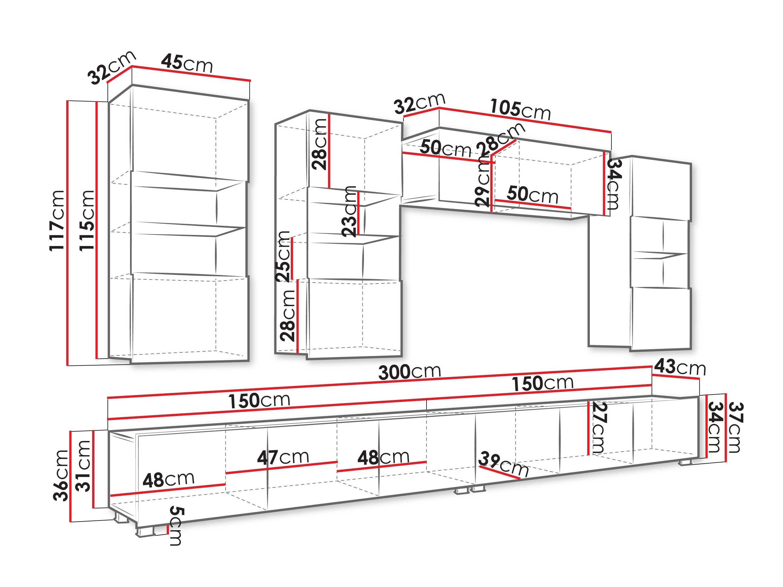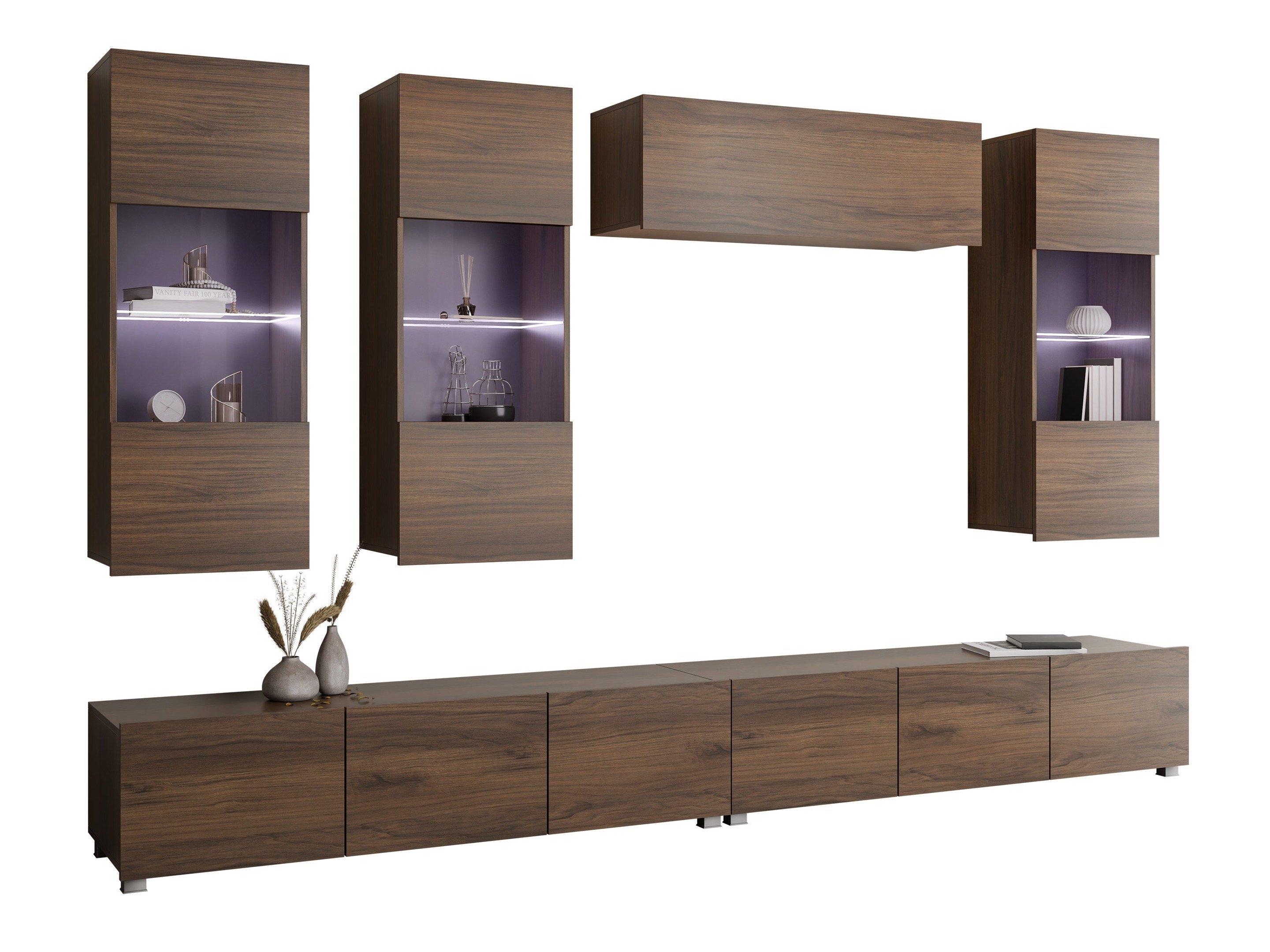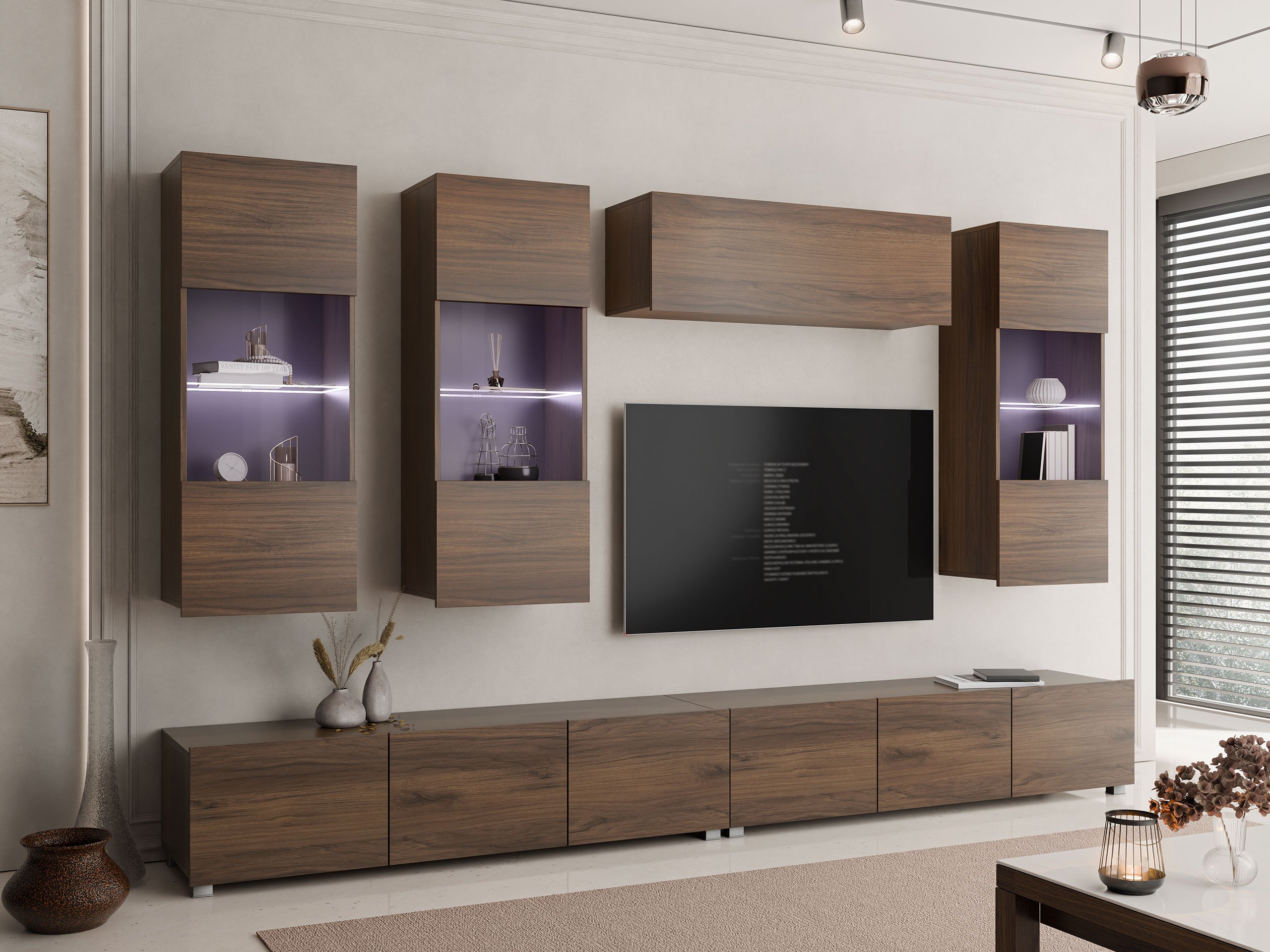 Cette collection de meubles est conçue pour s'adapter au rythme de la vie moderne, où fonctionnalité et esthétique vont de pair. Ses lignes épurées, ses formes contemporaines et ses détails subtils vous permettent de créer facilement un espace confortable et authentique où vous aurez plaisir à rentrer chez vous. La collection comprend des meubles TV, des ensembles de salon, des armoires murales, des lits et des bureaux, tous conçus avec soin pour s'harmoniser parfaitement entre eux. Ces pièces s'adaptent sans effort à différents intérieurs, offrant des solutions polyvalentes pour les espaces compacts ou formant des combinaisons audacieuses et distinctives dans les pièces plus grandes. Certains modèles sont équipés d'un éclairage LED intégré à faible consommation d'énergie, qui ajoute de la chaleur et de l'ambiance le soir. Les éléments en verre trempé améliorent à la fois la durabilité et le design, apportant une touche raffinée de caractère. Cette collection s'intègre facilement dans une variété d'intérieurs, contribuant à créer un espace de vie accueillant et élégant, un lieu où se réunir, faire une pause et simplement profiter de la vie.