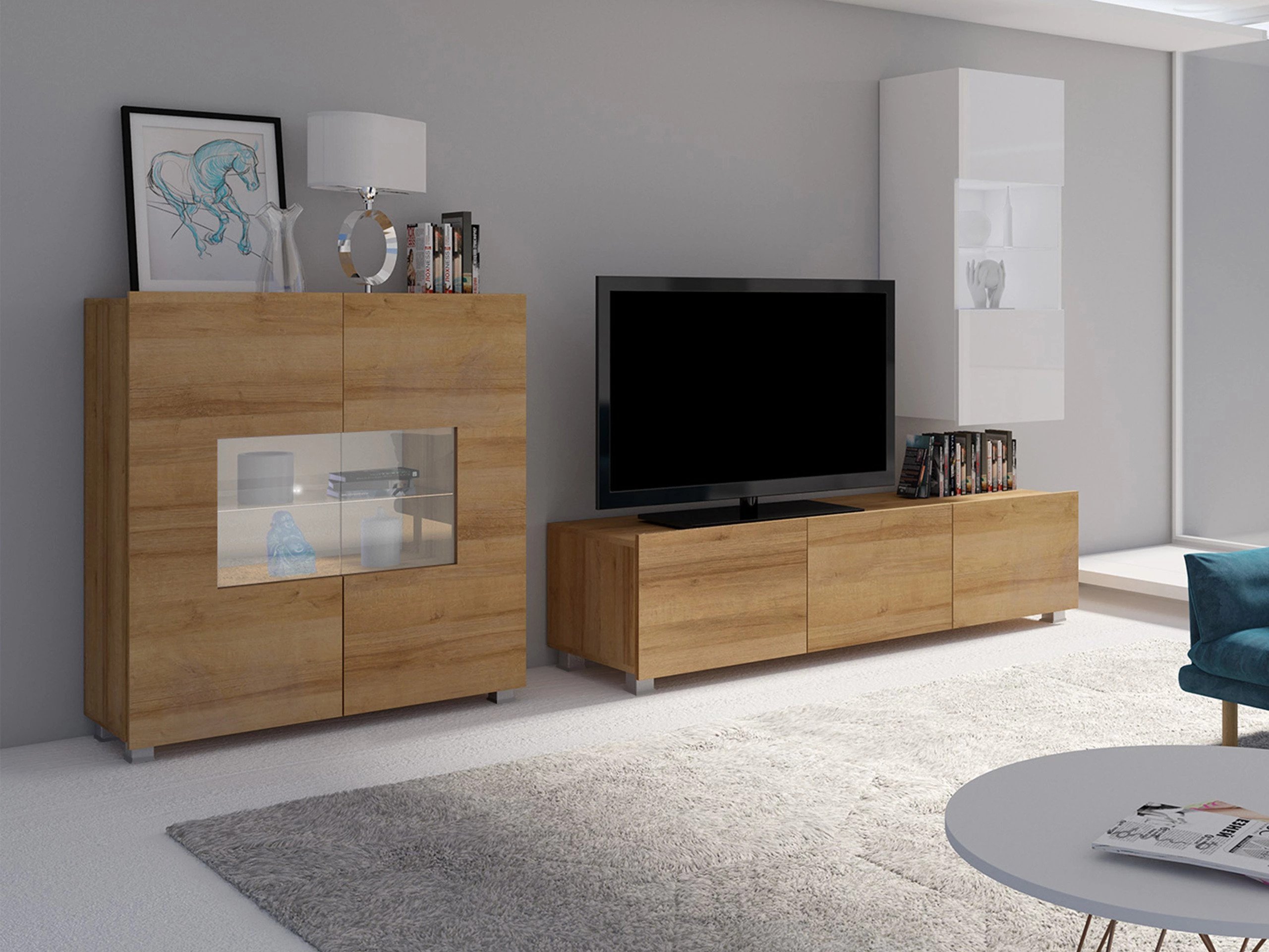 Ensemble de salon Remus VII (Chêne doré + Blanc + Blanc brillant)