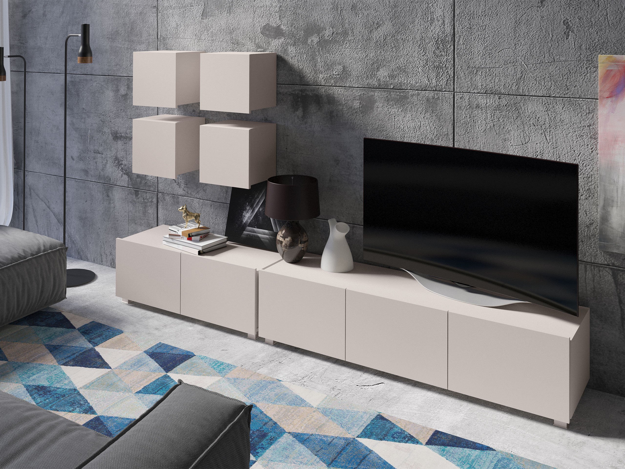 Cette collection de meubles est conçue pour s'adapter au rythme de la vie moderne, où fonctionnalité et esthétique vont de pair. Ses lignes épurées, ses formes contemporaines et ses détails subtils vous permettent de créer facilement un espace confortable et authentique où vous aurez plaisir à rentrer chez vous. La collection comprend des meubles TV, des ensembles de salon, des armoires murales, des lits et des bureaux, tous conçus avec soin pour s'harmoniser parfaitement entre eux. Ces pièces s'adaptent sans effort à différents intérieurs, offrant des solutions polyvalentes pour les espaces compacts ou formant des combinaisons audacieuses et distinctives dans les pièces plus grandes. Certains modèles sont équipés d'un éclairage LED intégré à faible consommation d'énergie, qui ajoute de la chaleur et de l'ambiance le soir. Les éléments en verre trempé améliorent à la fois la durabilité et le design, apportant une touche raffinée de caractère. Cette collection s'intègre facilement dans une variété d'intérieurs, contribuant à créer un espace de vie accueillant et élégant, un lieu où se réunir, faire une pause et simplement profiter de la vie.