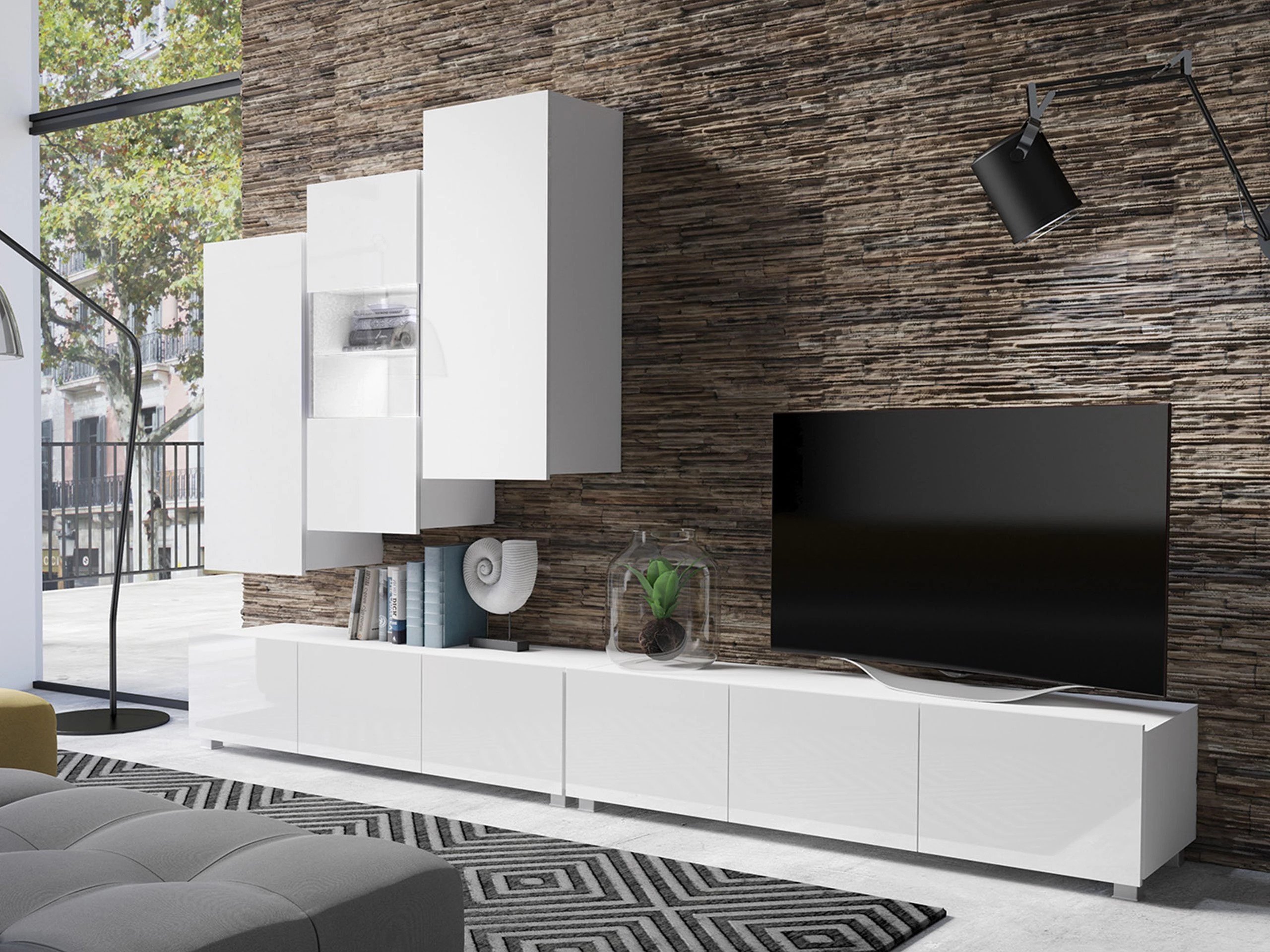 Cette collection de meubles est conçue pour s'adapter au rythme de la vie moderne, où fonctionnalité et esthétique vont de pair. Ses lignes épurées, ses formes contemporaines et ses détails subtils vous permettent de créer facilement un espace confortable et authentique où vous aurez plaisir à rentrer chez vous. La collection comprend des meubles TV, des ensembles de salon, des armoires murales, des lits et des bureaux, tous conçus avec soin pour s'harmoniser parfaitement entre eux. Ces pièces s'adaptent sans effort à différents intérieurs, offrant des solutions polyvalentes pour les espaces compacts ou formant des combinaisons audacieuses et distinctives dans les pièces plus grandes. Certains modèles sont équipés d'un éclairage LED intégré à faible consommation d'énergie, qui ajoute de la chaleur et de l'ambiance le soir. Les éléments en verre trempé améliorent à la fois la durabilité et le design, apportant une touche raffinée de caractère. Cette collection s'intègre facilement dans une variété d'intérieurs, contribuant à créer un espace de vie accueillant et élégant, un lieu où se réunir, faire une pause et simplement profiter de la vie.