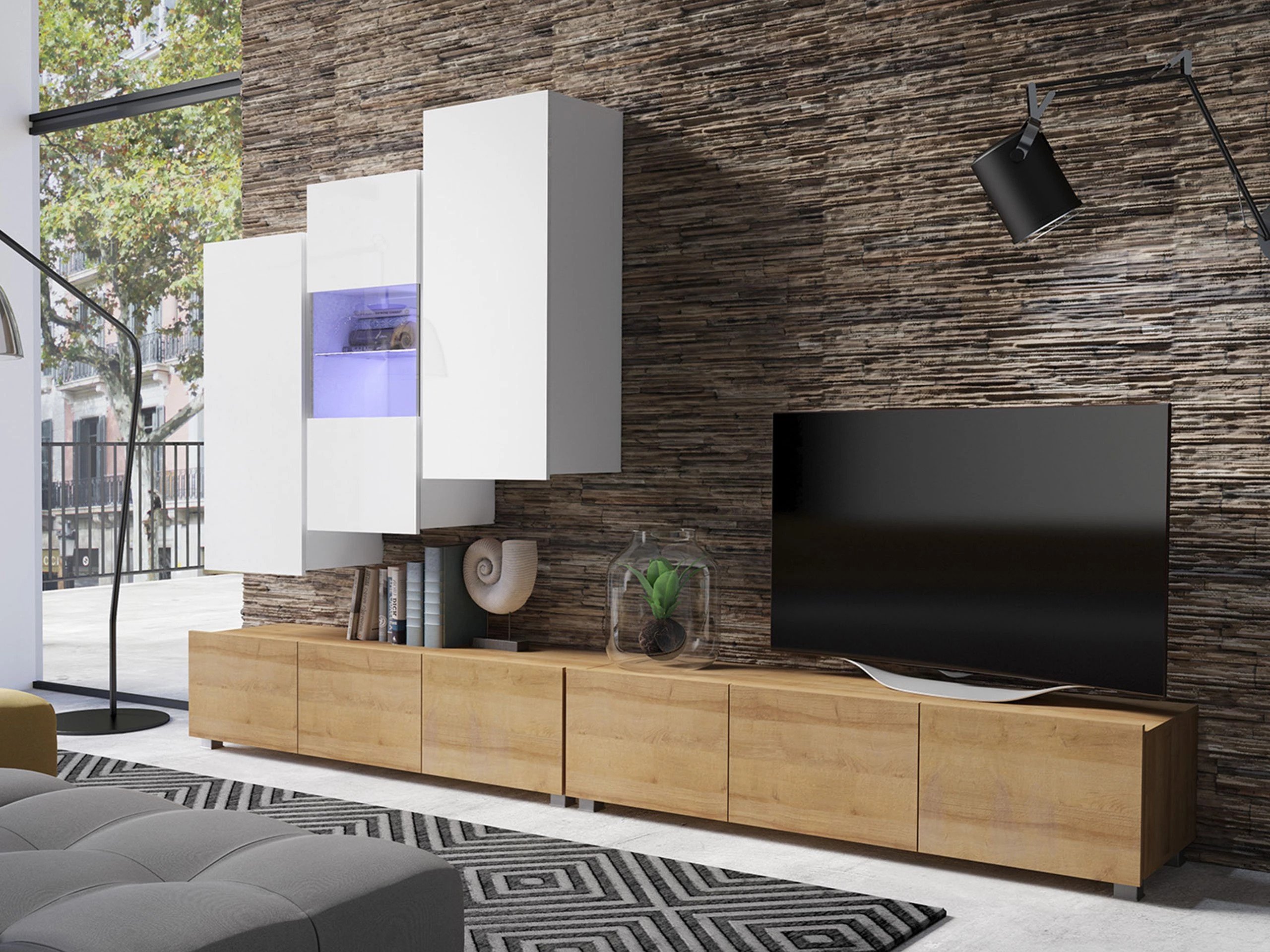 Cette collection de meubles est conçue pour s'adapter au rythme de la vie moderne, où fonctionnalité et esthétique vont de pair. Ses lignes épurées, ses formes contemporaines et ses détails subtils vous permettent de créer facilement un espace confortable et authentique où vous aurez plaisir à rentrer chez vous. La collection comprend des meubles TV, des ensembles de salon, des armoires murales, des lits et des bureaux, tous conçus avec soin pour s'harmoniser parfaitement entre eux. Ces pièces s'adaptent sans effort à différents intérieurs, offrant des solutions polyvalentes pour les espaces compacts ou formant des combinaisons audacieuses et distinctives dans les pièces plus grandes. Certains modèles sont équipés d'un éclairage LED intégré à faible consommation d'énergie, qui ajoute de la chaleur et de l'ambiance le soir. Les éléments en verre trempé améliorent à la fois la durabilité et le design, apportant une touche raffinée de caractère. Cette collection s'intègre facilement dans une variété d'intérieurs, contribuant à créer un espace de vie accueillant et élégant, un lieu où se réunir, faire une pause et simplement profiter de la vie.