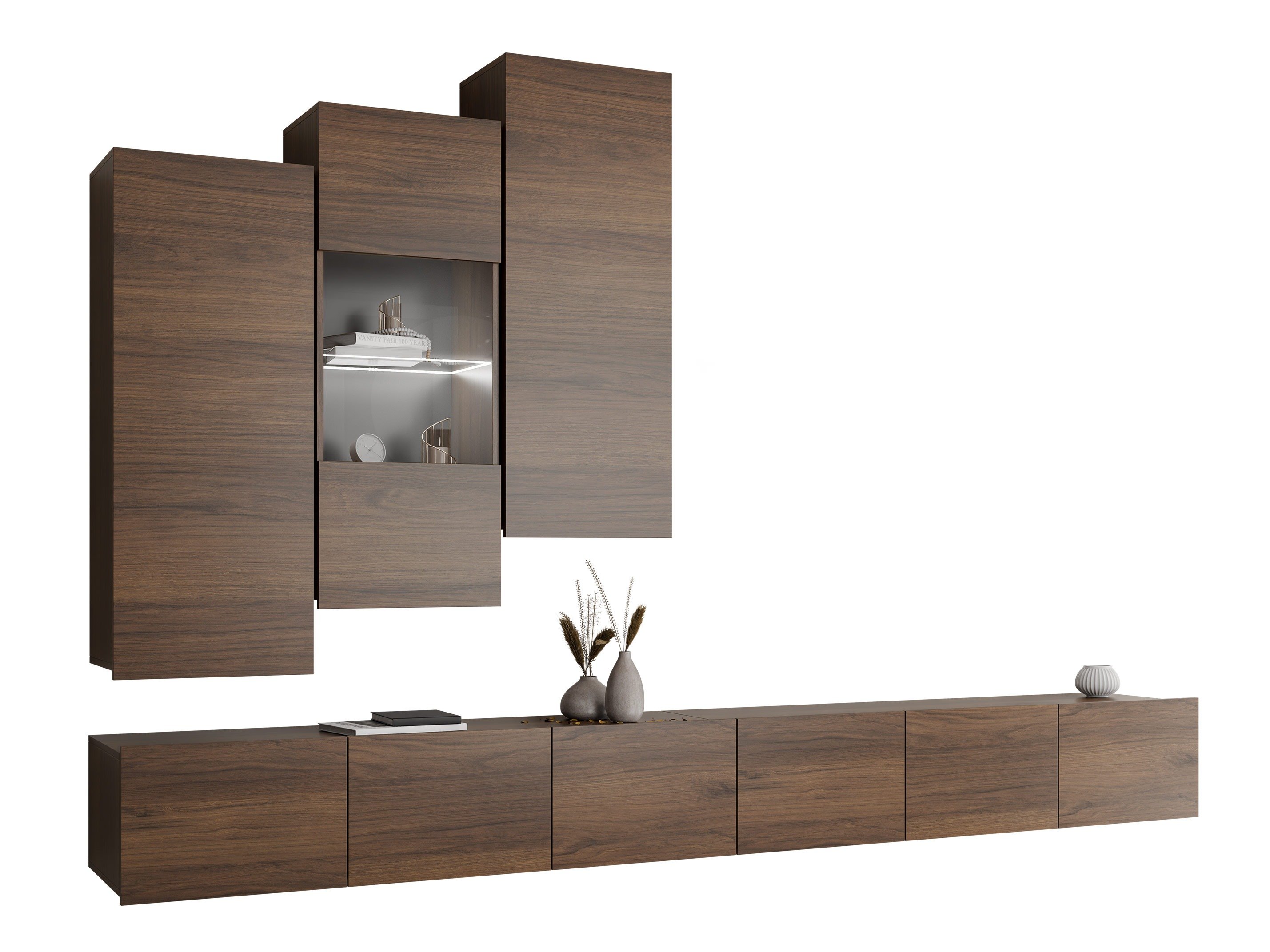 Cette collection de meubles est conçue pour s'adapter au rythme de la vie moderne, où fonctionnalité et esthétique vont de pair. Ses lignes épurées, ses formes contemporaines et ses détails subtils vous permettent de créer facilement un espace confortable et authentique où vous aurez plaisir à rentrer chez vous. La collection comprend des meubles TV, des ensembles de salon, des armoires murales, des lits et des bureaux, tous conçus avec soin pour s'harmoniser parfaitement entre eux. Ces pièces s'adaptent sans effort à différents intérieurs, offrant des solutions polyvalentes pour les espaces compacts ou formant des combinaisons audacieuses et distinctives dans les pièces plus grandes. Certains modèles sont équipés d'un éclairage LED intégré à faible consommation d'énergie, qui ajoute de la chaleur et de l'ambiance le soir. Les éléments en verre trempé améliorent à la fois la durabilité et le design, apportant une touche raffinée de caractère. Cette collection s'intègre facilement dans une variété d'intérieurs, contribuant à créer un espace de vie accueillant et élégant, un lieu où se réunir, faire une pause et simplement profiter de la vie.