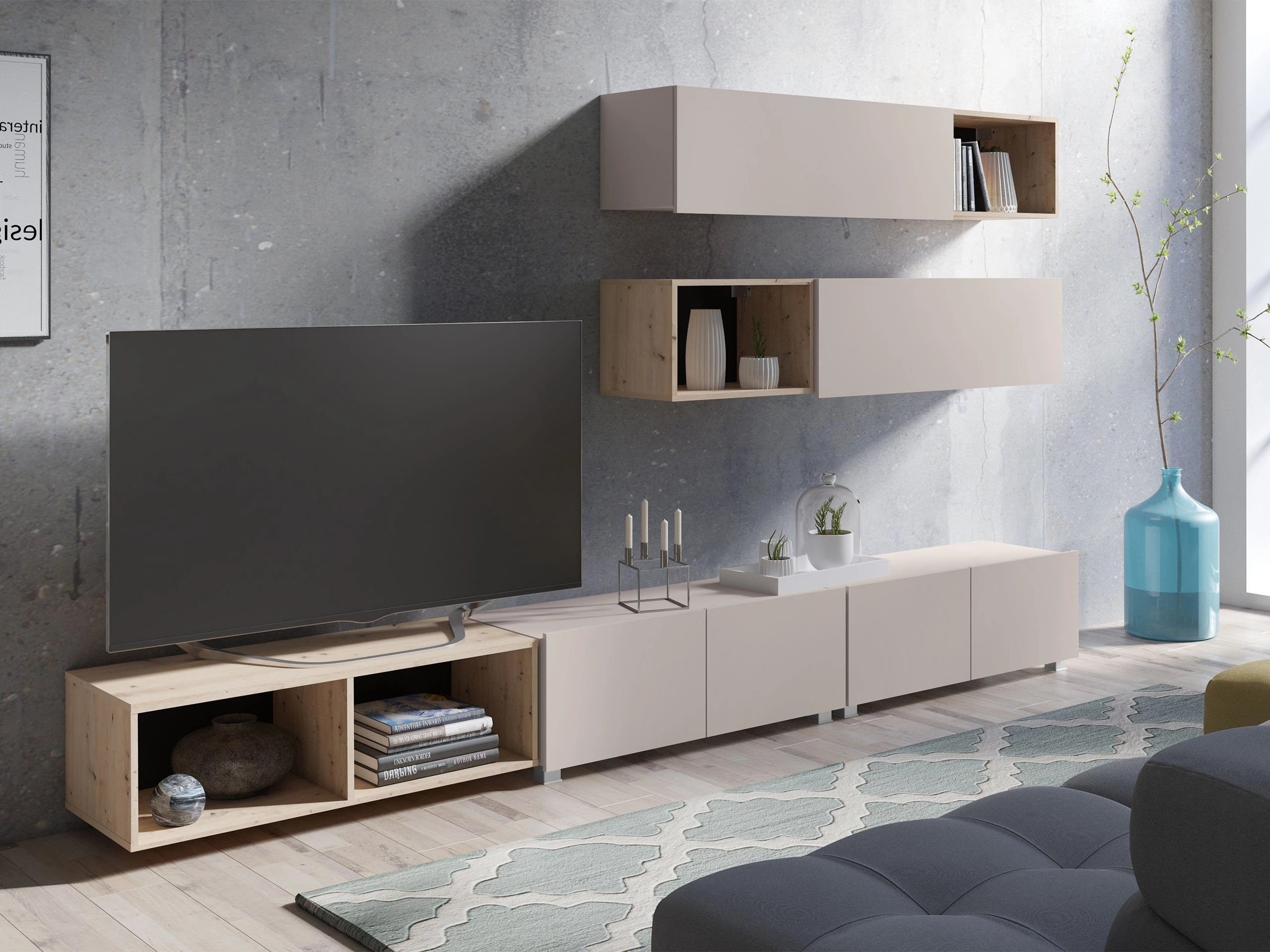 Cette collection de meubles est conçue pour s'adapter au rythme de la vie moderne, où fonctionnalité et esthétique vont de pair. Ses lignes épurées, ses formes contemporaines et ses détails subtils vous permettent de créer facilement un espace confortable et authentique où vous aurez plaisir à rentrer chez vous. La collection comprend des meubles TV, des ensembles de salon, des armoires murales, des lits et des bureaux, tous conçus avec soin pour s'harmoniser parfaitement entre eux. Ces pièces s'adaptent sans effort à différents intérieurs, offrant des solutions polyvalentes pour les espaces compacts ou formant des combinaisons audacieuses et distinctives dans les pièces plus grandes. Certains modèles sont équipés d'un éclairage LED intégré à faible consommation d'énergie, qui ajoute de la chaleur et de l'ambiance le soir. Les éléments en verre trempé améliorent à la fois la durabilité et le design, apportant une touche raffinée de caractère. Cette collection s'intègre facilement dans une variété d'intérieurs, contribuant à créer un espace de vie accueillant et élégant, un lieu où se réunir, faire une pause et simplement profiter de la vie.
