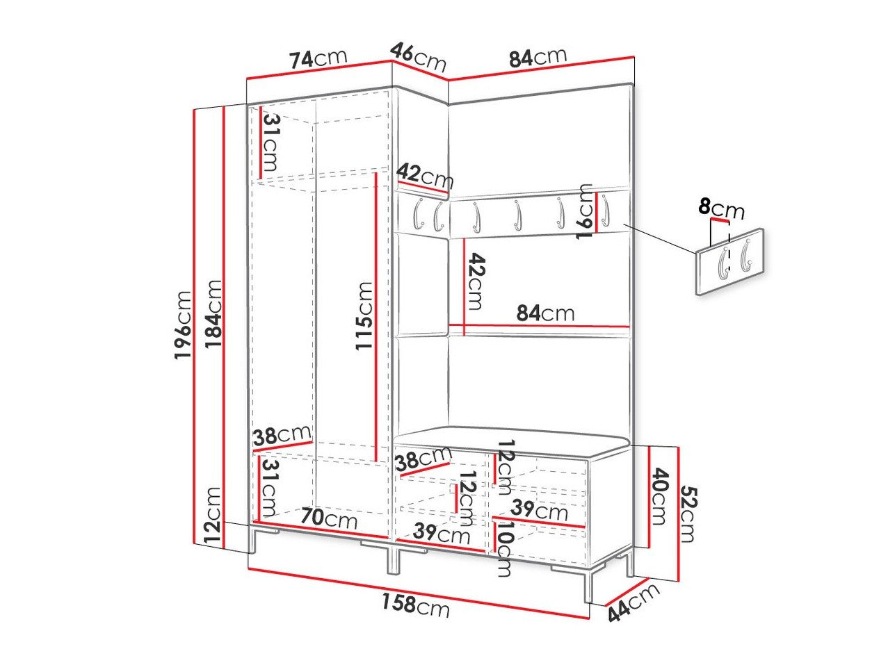 Dimensions du portemanteau: