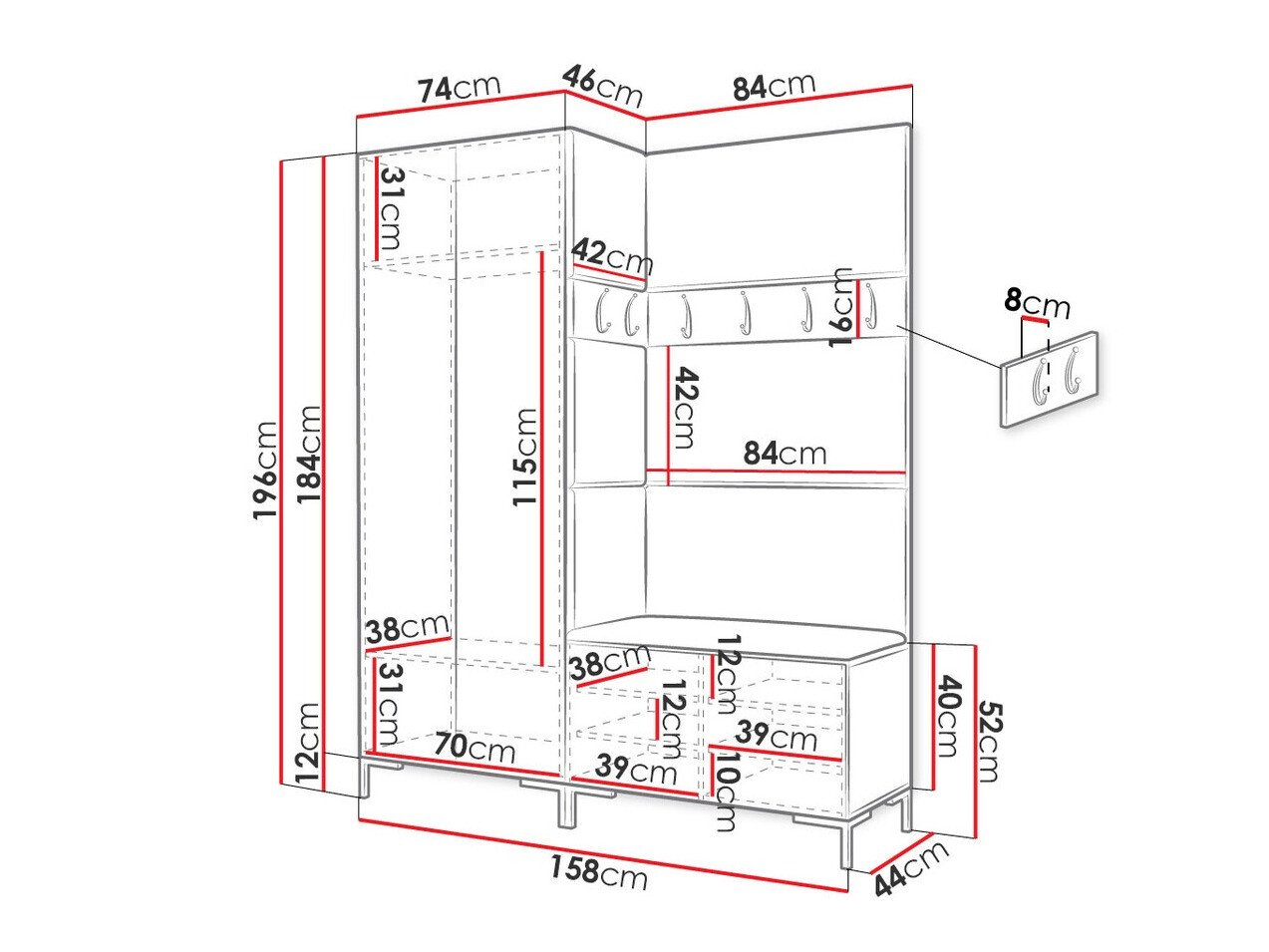 Dimensions du portemanteau: