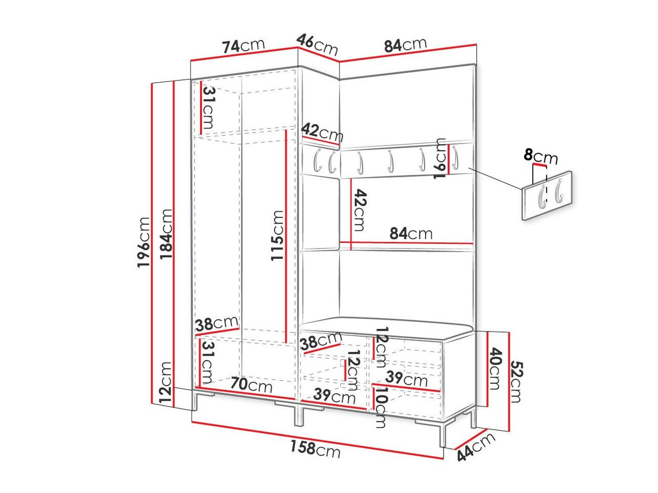 Dimensions du portemanteau: