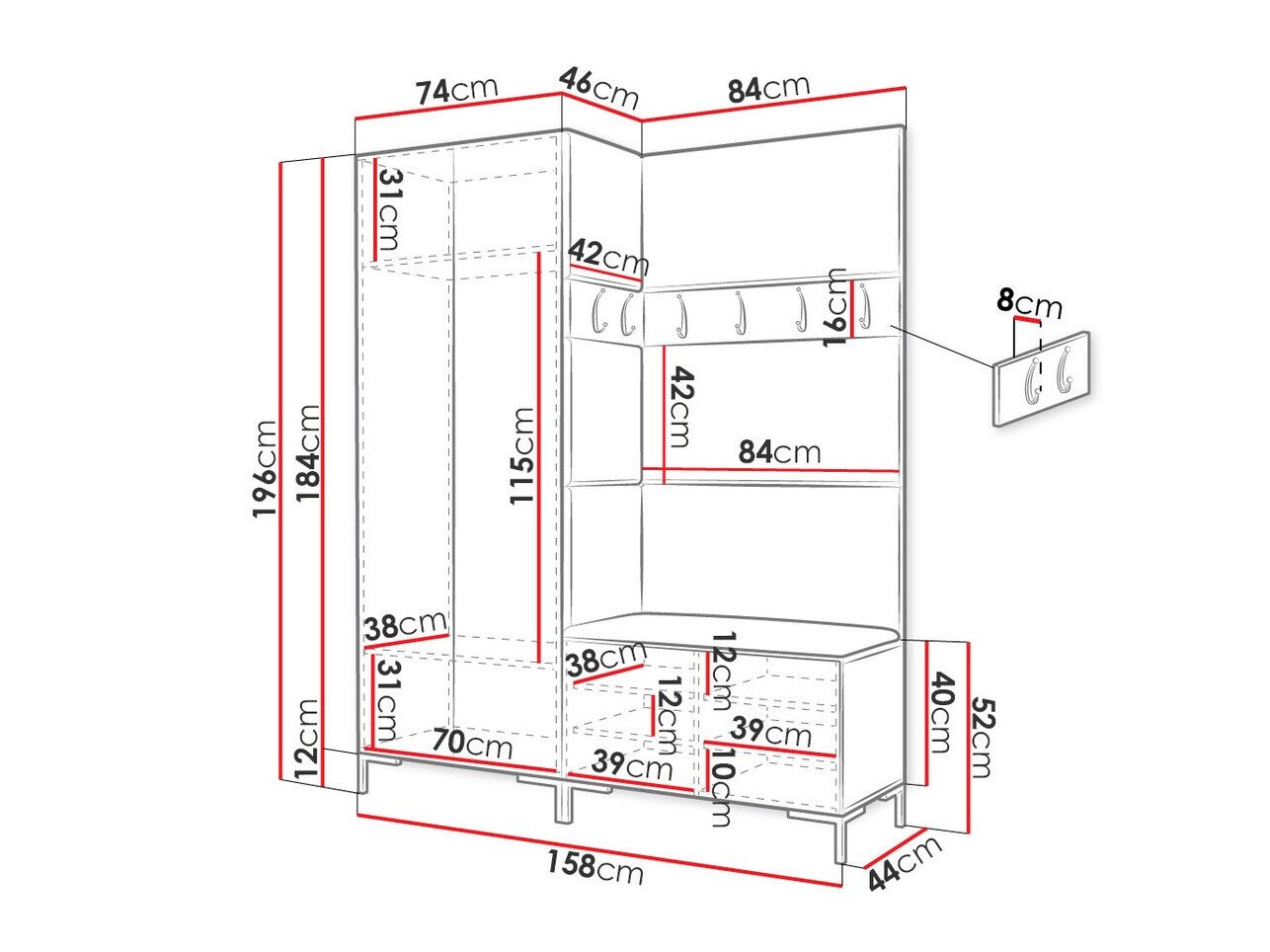 Dimensions du portemanteau: