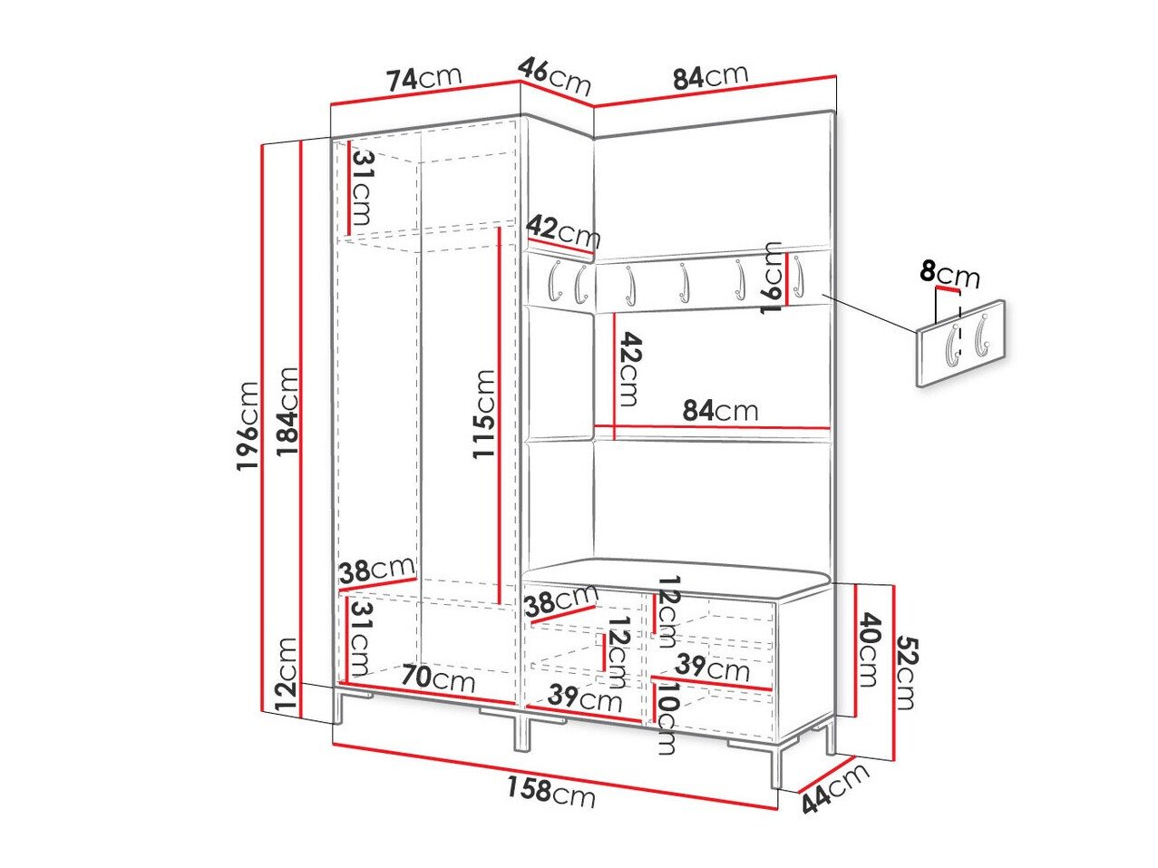 Dimensions du portemanteau: