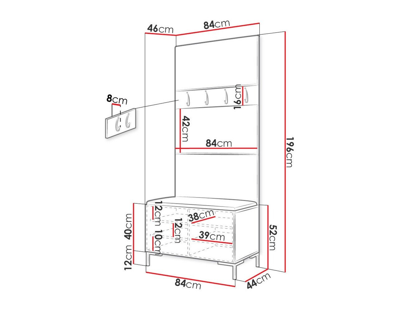 Dimensions du meuble à chaussures: