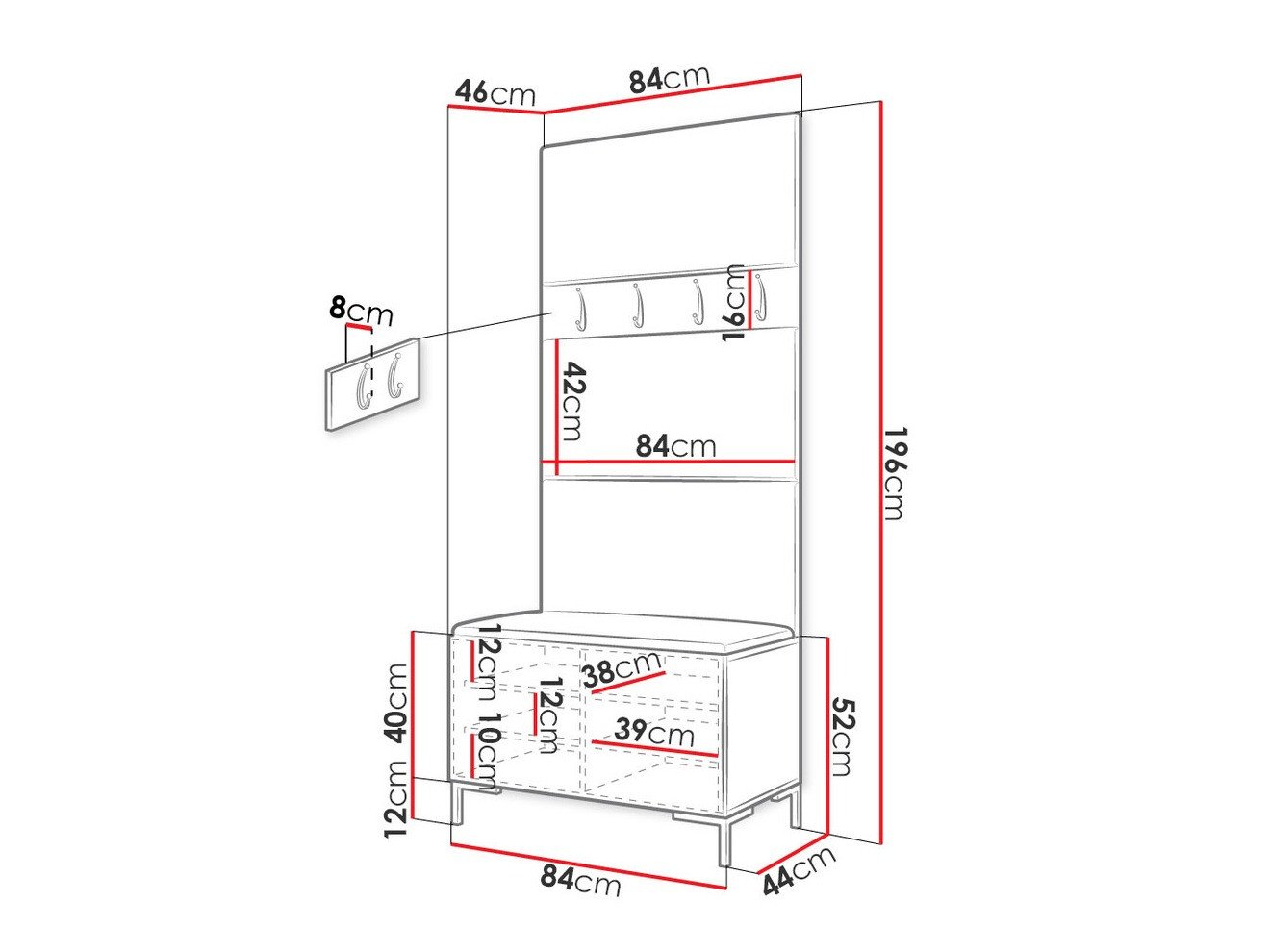 Dimensions du meuble à chaussures:
