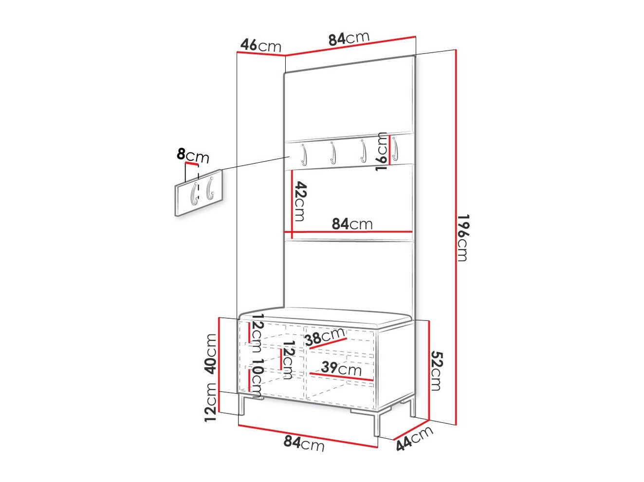 16 x 84 x 8 cm