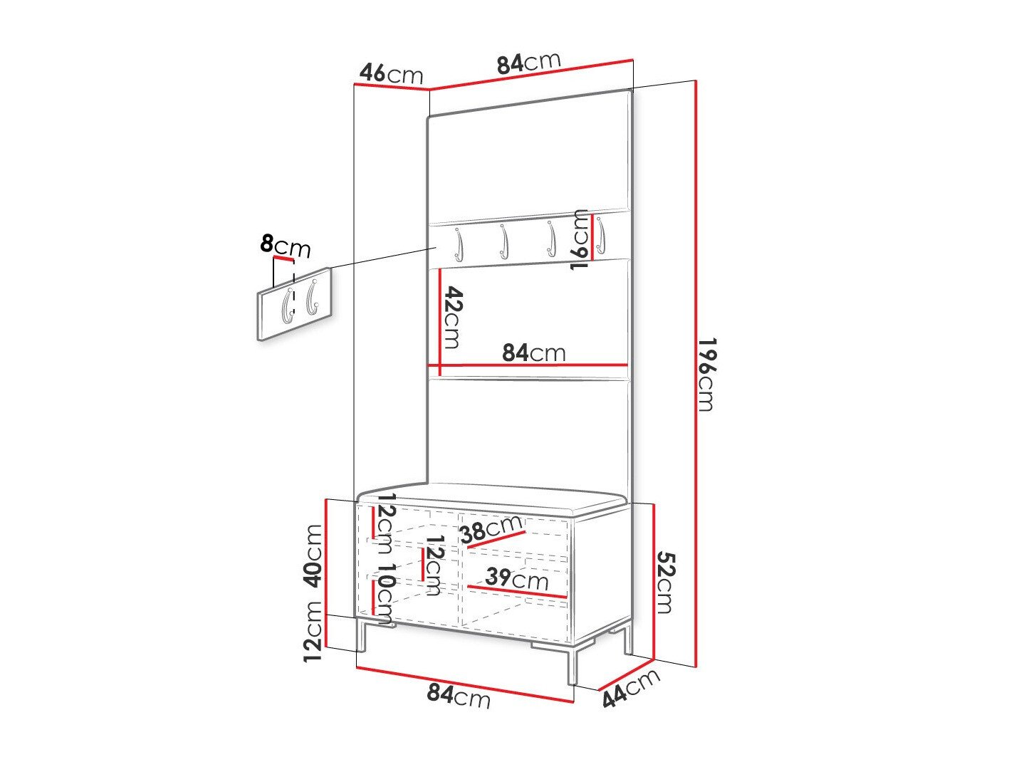 Dimensions du portemanteau:
