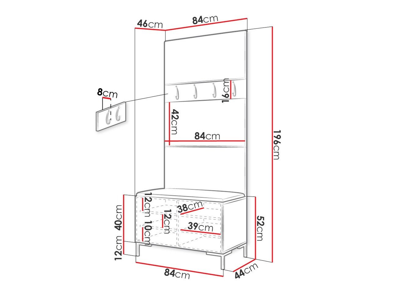 16 x 84 x 8 cm