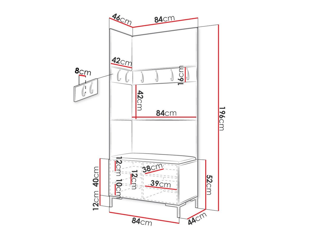 Dimensions du portemanteau: