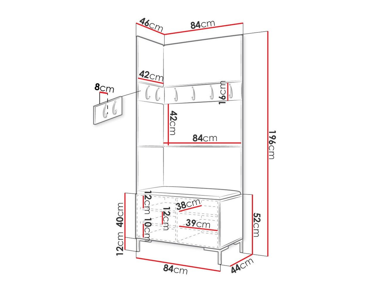 Dimensions du meuble à chaussures: