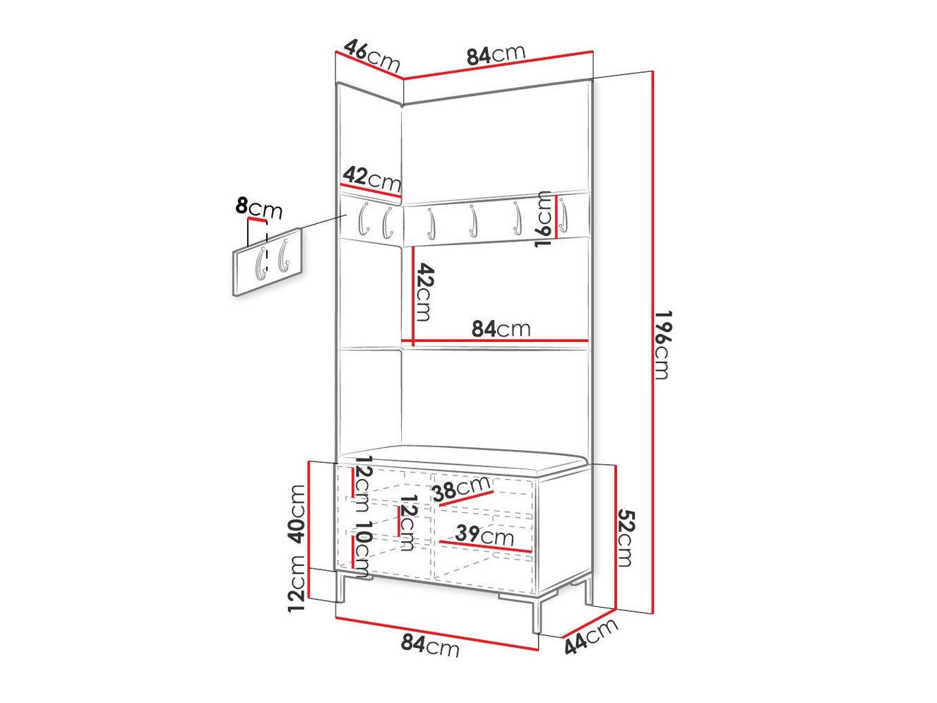 Dimensions du portemanteau: