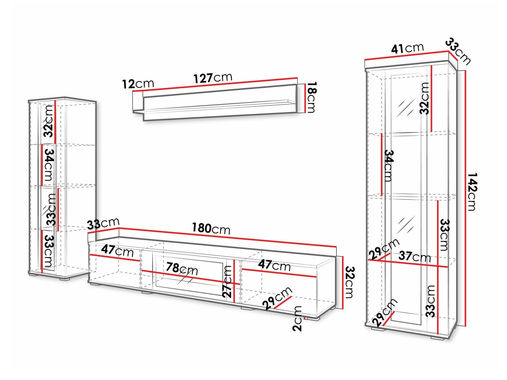30 x 180 x 33 cm