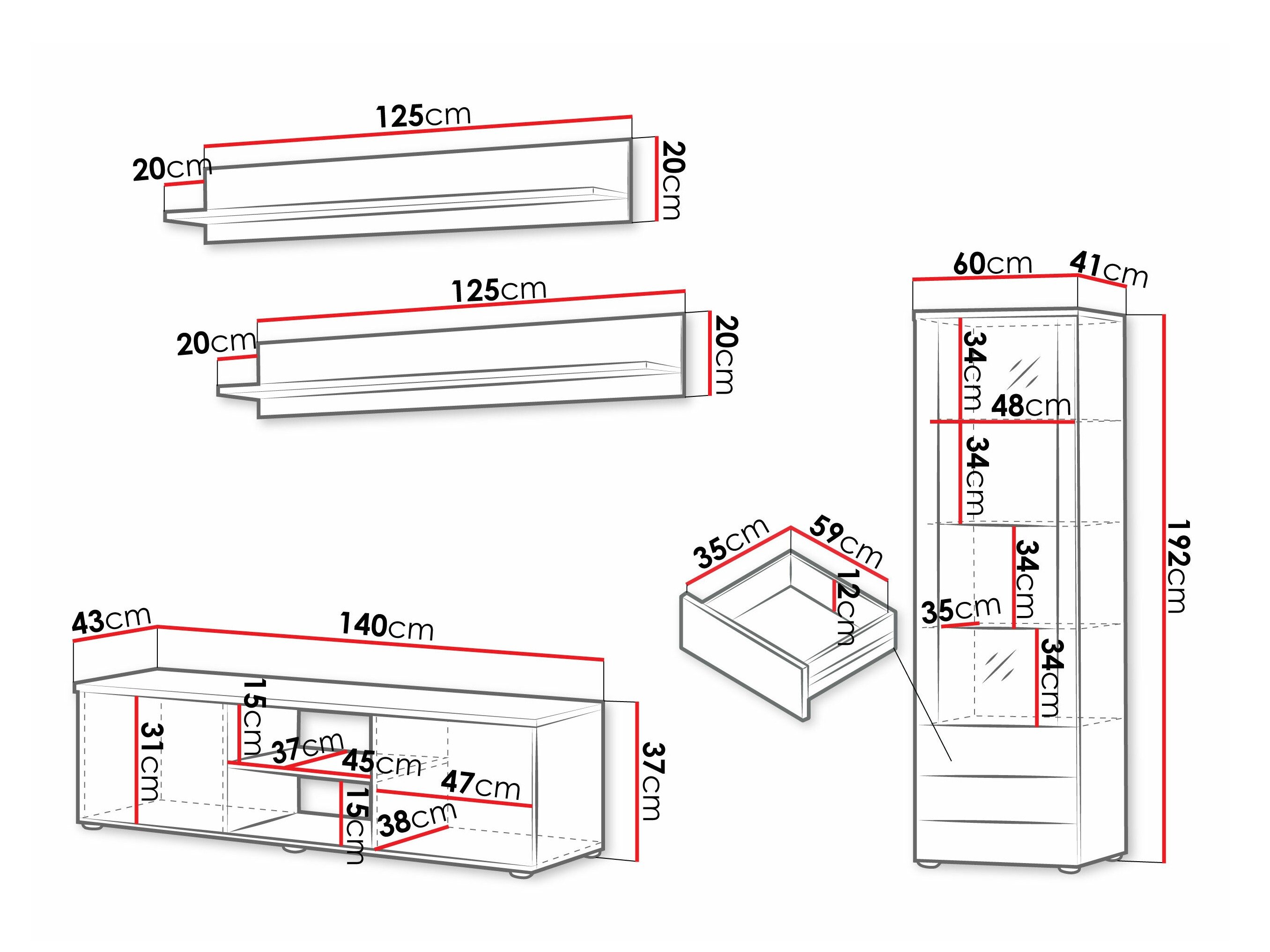 37 x 140 x 43 cm