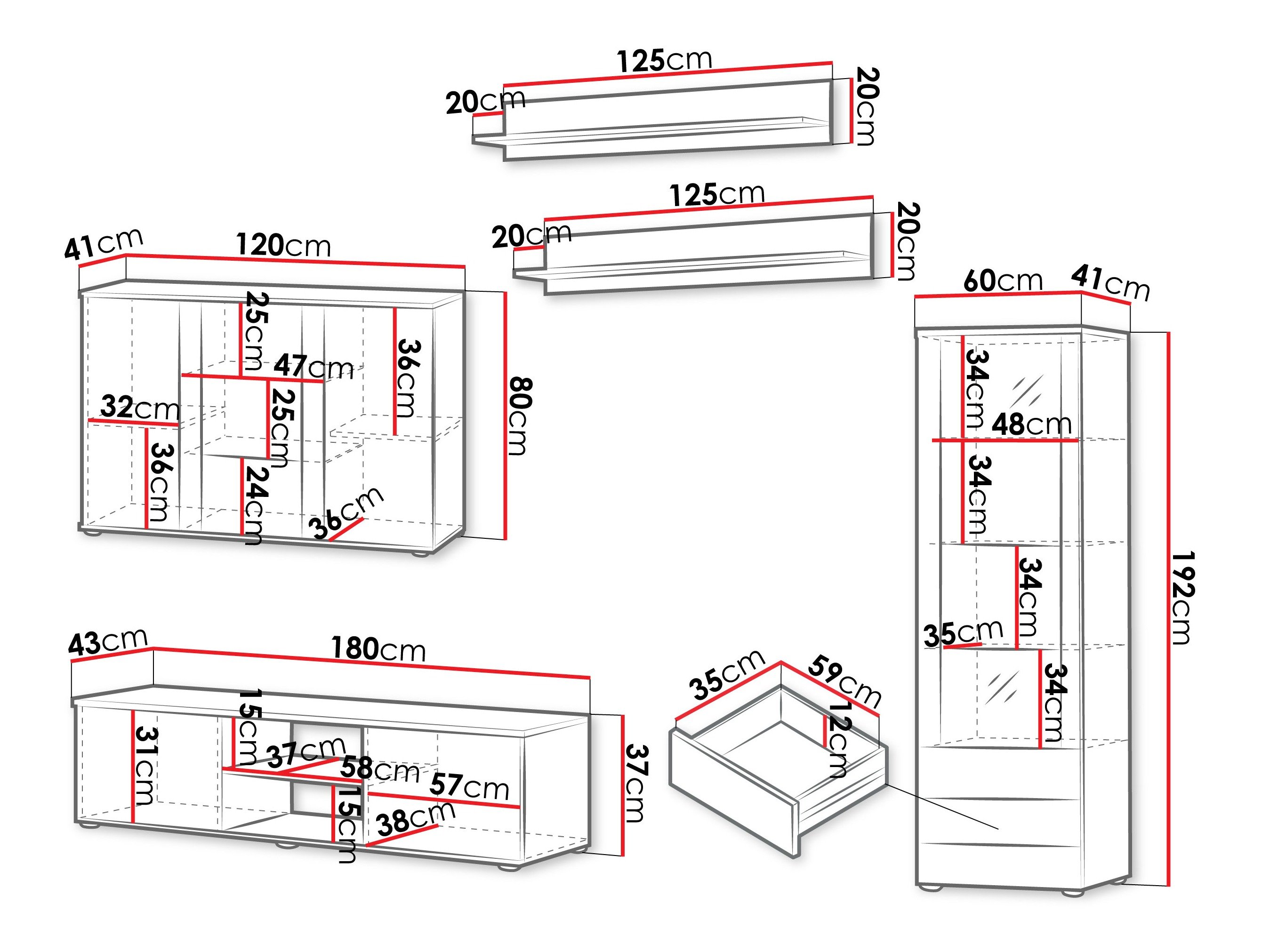 192 cm  60 cm  41 cm