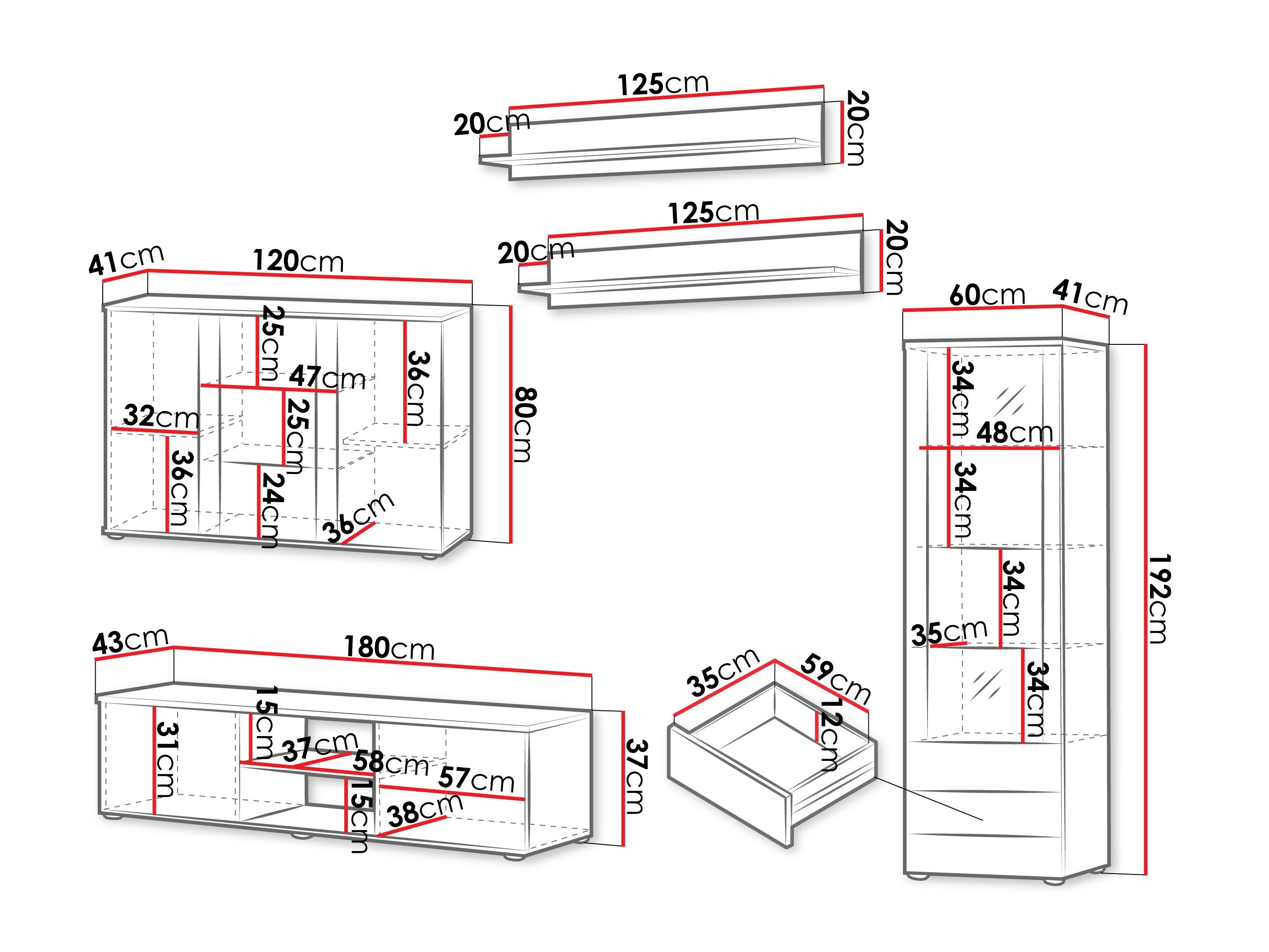 37 x 180 x 43 cm