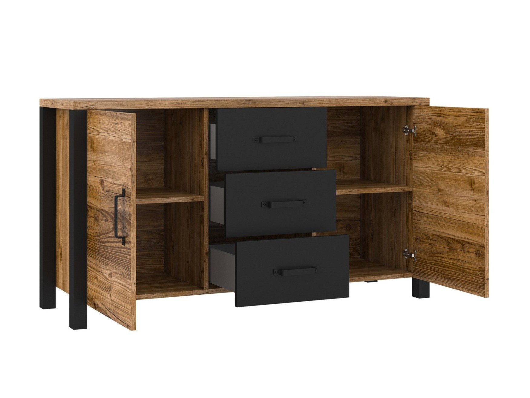 Cette collection de style industriel est fabriquée avec une attention particulière aux détails. La particularité de cette collection est la surface extrêmement mate des meubles, créée par un film spécial. Ce film est résistant aux marques de contact, ce qui évite les empreintes digitales et facilite l'entretien. La surface mate est lisse et met parfaitement en valeur le design unique des meubles. Le style industriel est encore accentué par les poignées en plastique noir. Les meubles de cette collection sont polyvalents : lors du montage, vous pouvez choisir le côté d'ouverture de la porte. De plus, les étagères sont réglables en hauteur, ce qui vous permet d'adapter le meuble à vos besoins. Chaque pièce de cette collection incarne un look industriel parfait. Si vous souhaitez créer un intérieur industriel, cette collection est faite pour vous.