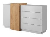 Si vous êtes à la recherche de solutions de design modernes pour votre maison, prêtez attention à cette collection. Le duo chêne doré « Craft » et couleur blanche sera très élégant dans l'espace, et les formes inhabituelles des meubles donneront à la pièce un caractère unique. Le design minimaliste est complété par le mécanisme d'ouverture « Push to open », qui permet d'ouvrir les portes et les tiroirs par simple appui. Les bords des meubles sont protégés par un ruban adhésif spécial, ce qui garantit que les meubles restent en excellent état, même après une longue utilisation. La collection combine style et praticité, ce qui en fait le choix idéal pour la maison moderne.