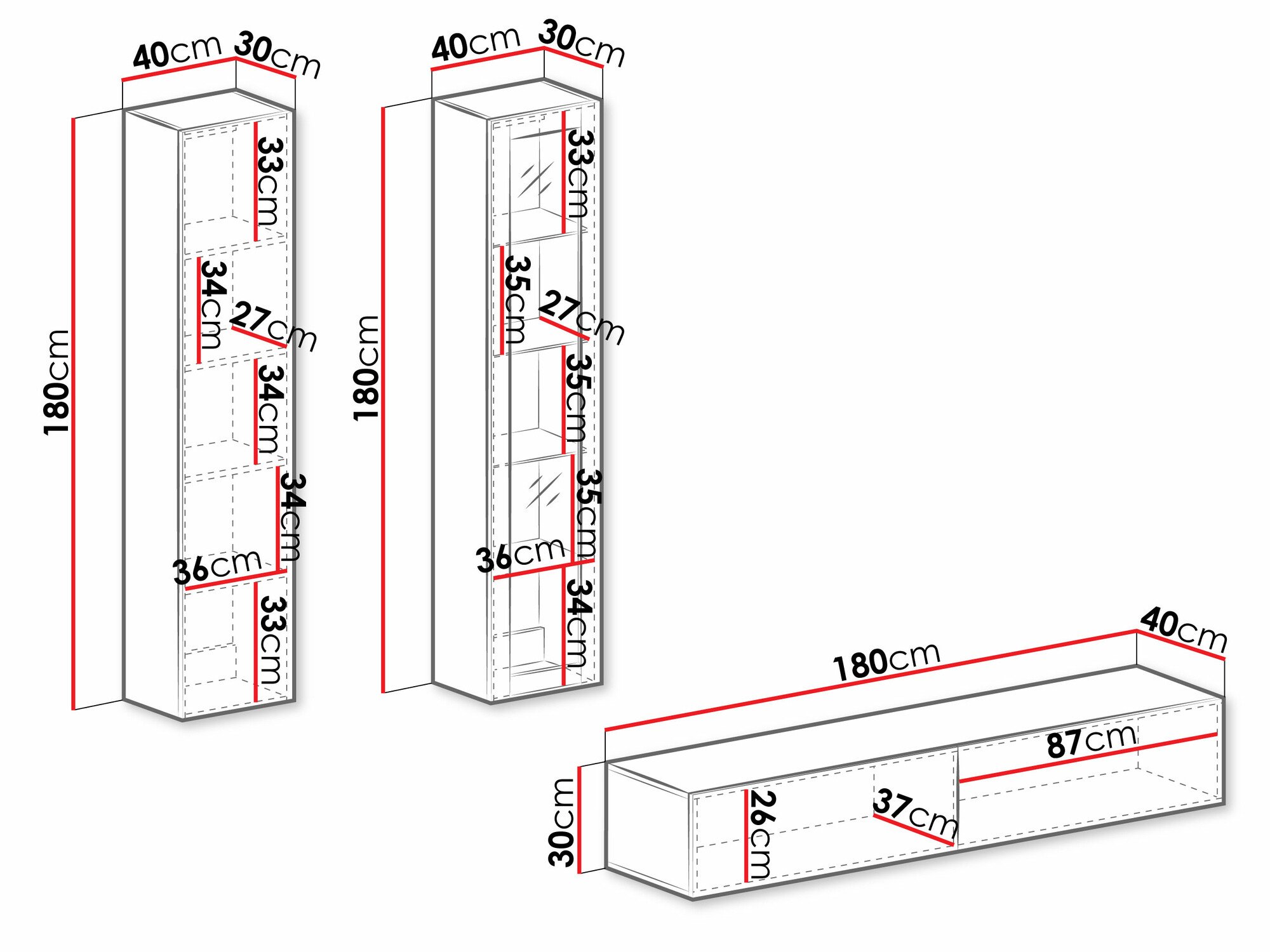 30 x 180 x 40 cm