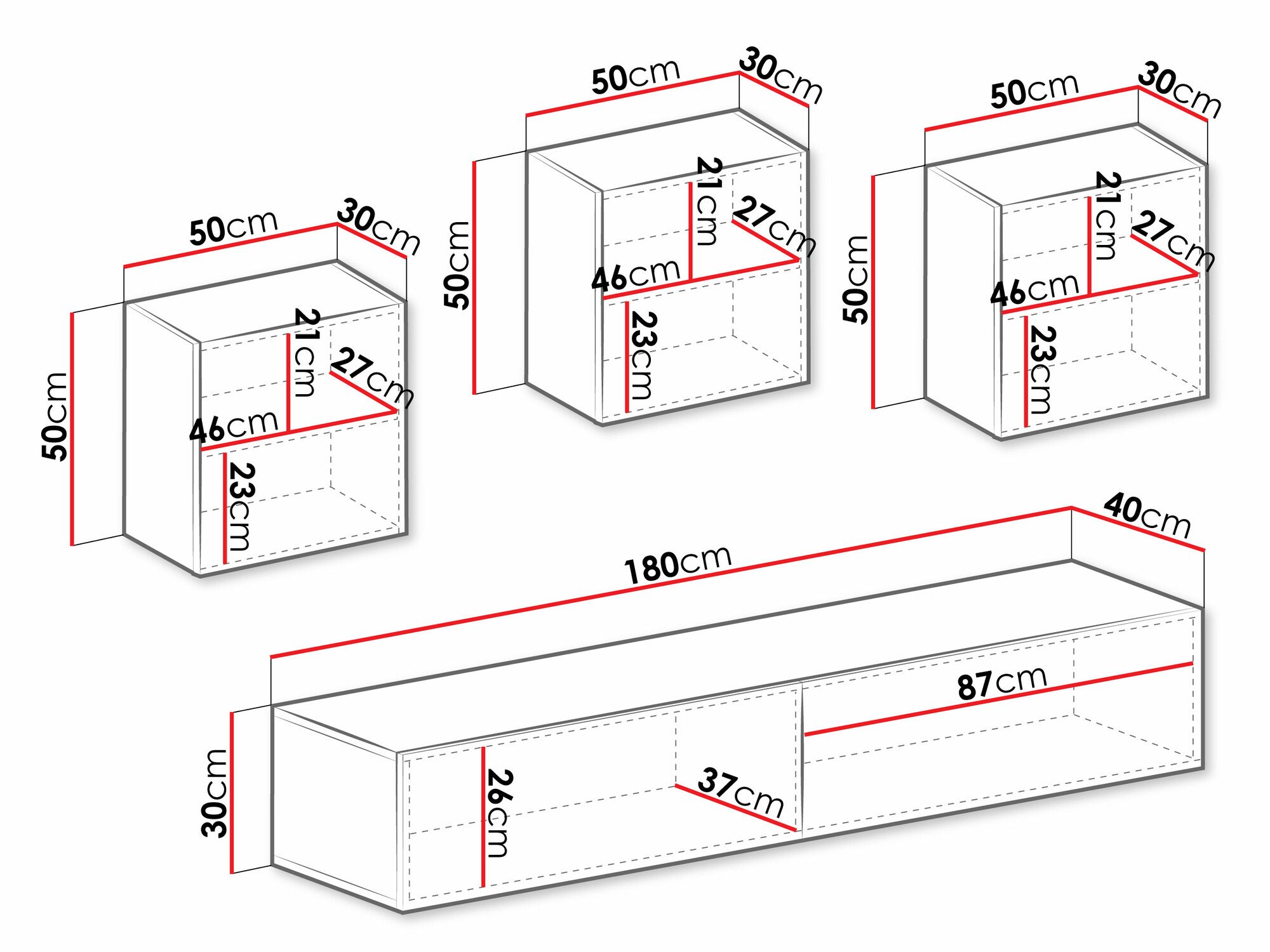 Informations sur la fixation au mur. Les meubles suspendus ou fixés au mur ne sont pas livrés avec des vis de fixation, vous devez donc vous en occuper individuellement. Les différents types de murs nécessitent des vis spécifiques, voire des profondeurs de perçage différentes. Choisissez le matériel de fixation en fonction du poids du meuble et du type de mur (cloison sèche, maçonnerie, bois, etc.). Pour garantir la qualité et la sécurité, utilisez des vis conçues spécifiquement pour votre type de mur.