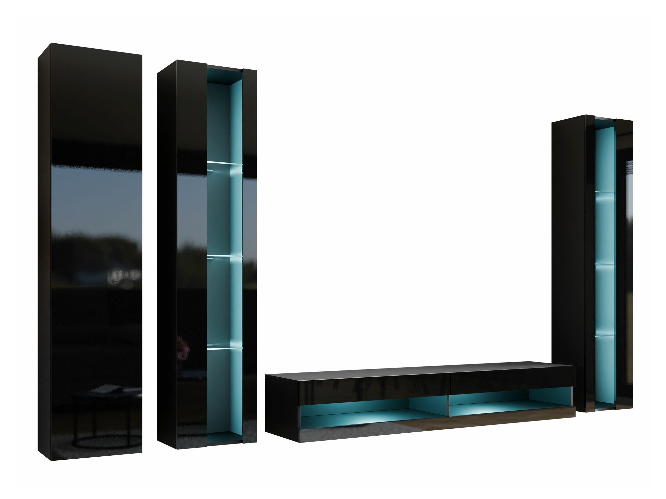 Cette collection de meubles modernes crée une esthétique harmonieuse dans le salon tout en améliorant la sensation d'espace. Les formes minimalistes et les choix de conception fonctionnels contribuent à créer un cadre confortable et élégant. Des meubles de salon aux étagères murales, les pièces de cette collection sont conçues pour s'harmoniser entre elles, ce qui permet de créer facilement des solutions pratiques pour les petits espaces ou des combinaisons plus audacieuses dans les grandes pièces. Certains modèles intègrent un éclairage LED économe en énergie pour ajouter de la chaleur, tandis que les éléments en verre trempé contribuent à un look raffiné et léger. Un mécanisme d'ouverture à une touche sur les portes préserve la silhouette épurée et minimaliste du mobilier. Cette collection polyvalente s'adapte sans effort à une variété de styles d'intérieur, contribuant à créer un espace de vie contemporain et accueillant.
