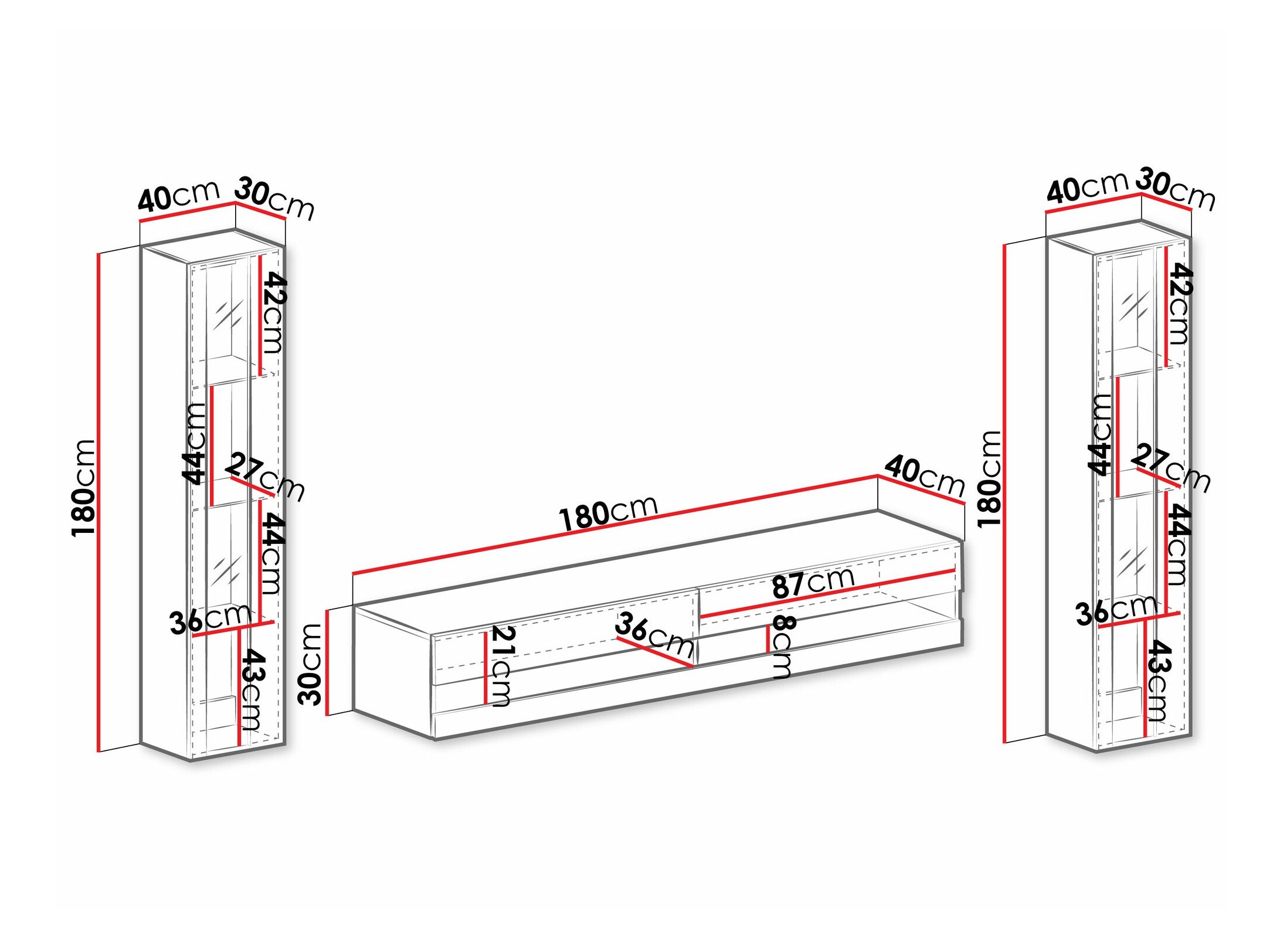 Cette collection de meubles modernes crée une esthétique harmonieuse dans le salon tout en améliorant la sensation d'espace. Les formes minimalistes et les choix de conception fonctionnels contribuent à créer un cadre confortable et élégant. Des meubles de salon aux étagères murales, les pièces de cette collection sont conçues pour s'harmoniser entre elles, ce qui permet de créer facilement des solutions pratiques pour les petits espaces ou des combinaisons plus audacieuses dans les grandes pièces. Certains modèles intègrent un éclairage LED économe en énergie pour ajouter de la chaleur, tandis que les éléments en verre trempé contribuent à un look raffiné et léger. Un mécanisme d'ouverture à une touche sur les portes préserve la silhouette épurée et minimaliste du mobilier. Cette collection polyvalente s'adapte sans effort à une variété de styles d'intérieur, contribuant à créer un espace de vie contemporain et accueillant.