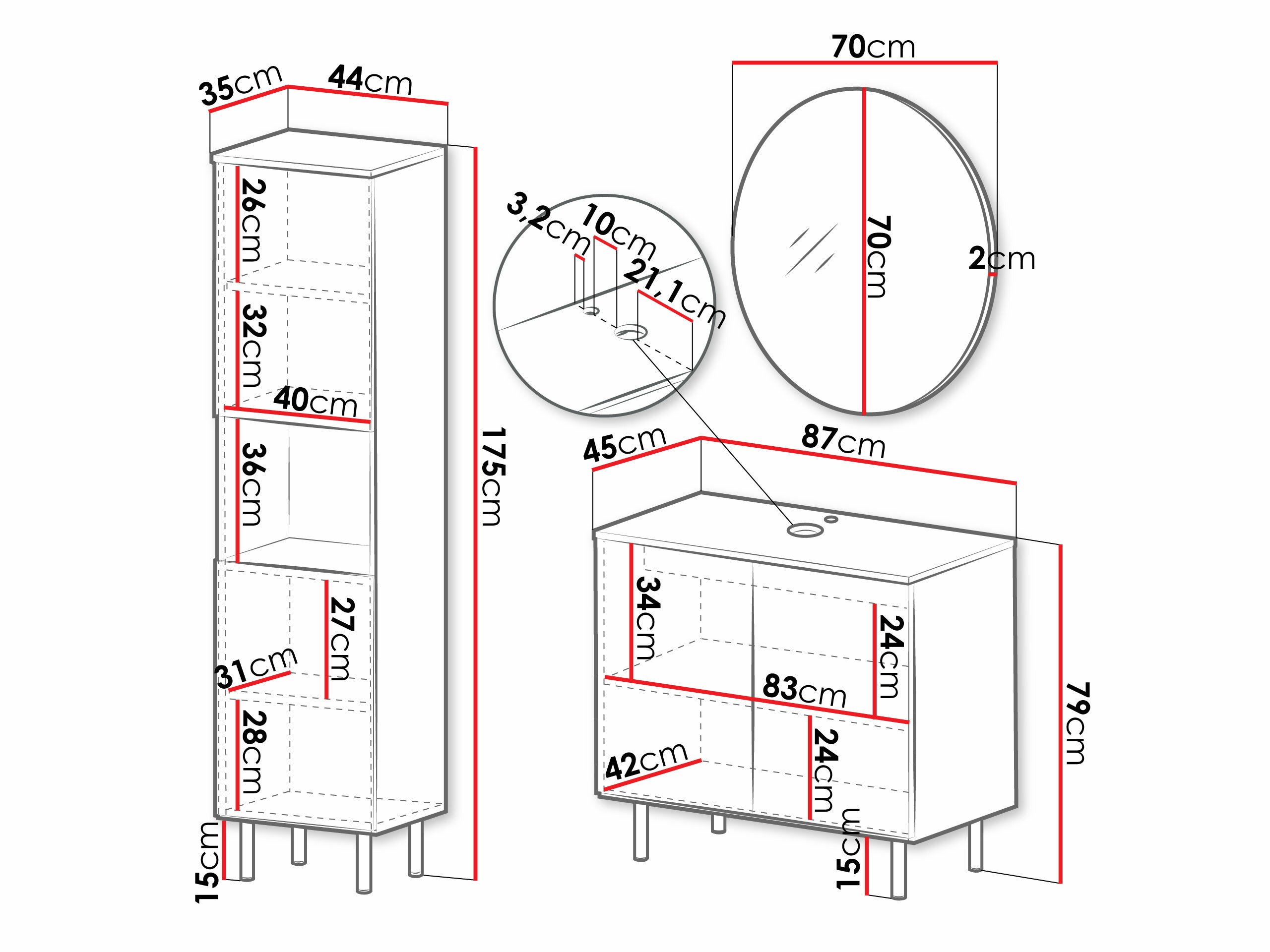 Informations sur la fixation au mur. Les meubles suspendus ou fixés au mur ne sont pas livrés avec des vis de fixation, vous devez donc vous en occuper individuellement. Les différents types de murs nécessitent des vis spécifiques, voire des profondeurs de perçage différentes. Choisissez le matériel de fixation en fonction du poids du meuble et du type de mur (cloison sèche, maçonnerie, bois, etc.). Pour garantir la qualité et la sécurité, utilisez des vis conçues spécifiquement pour votre type de mur.