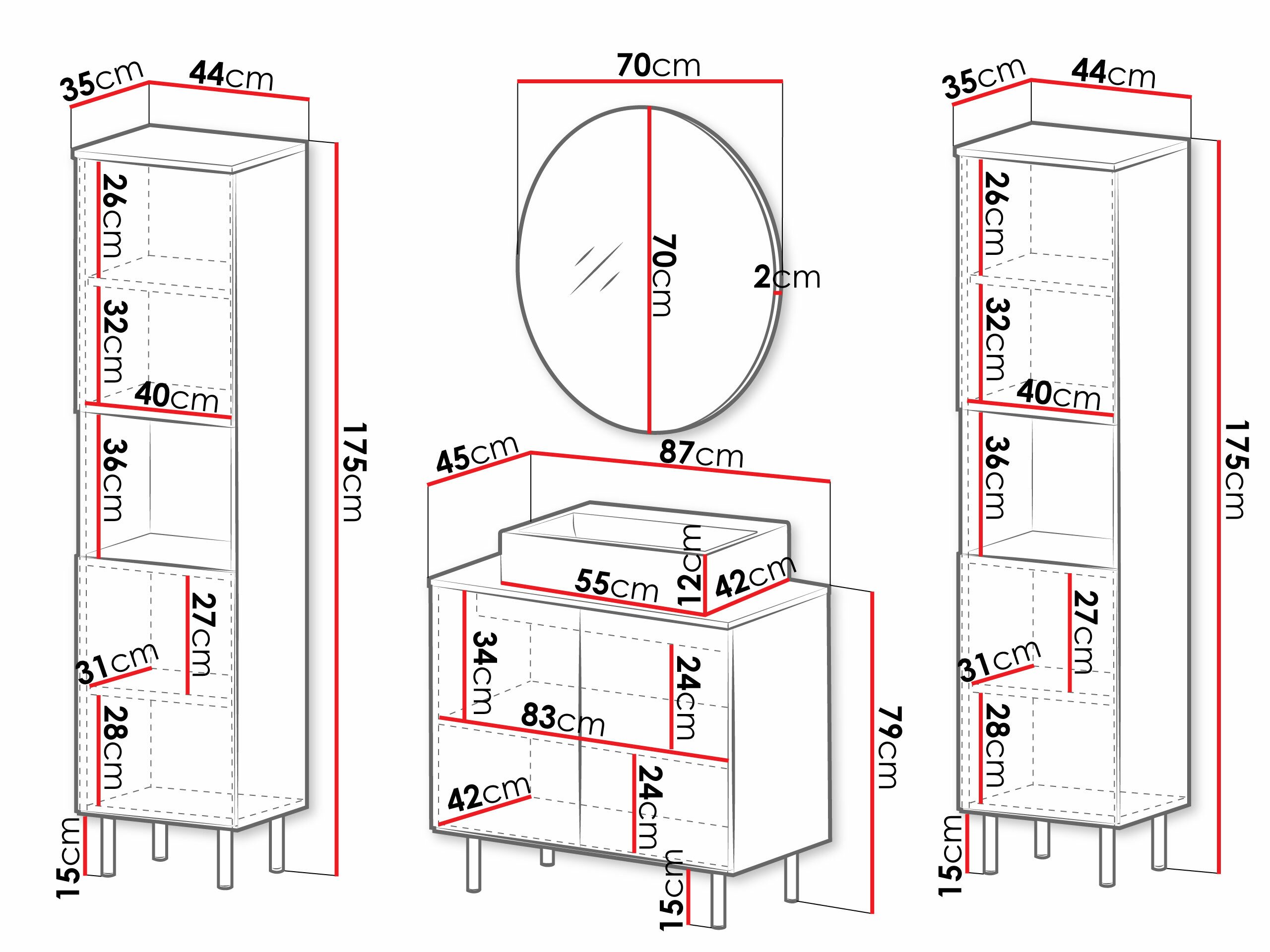 Informations sur la fixation au mur. Les meubles suspendus ou fixés au mur ne sont pas livrés avec des vis de fixation, vous devez donc vous en occuper individuellement. Les différents types de murs nécessitent des vis spécifiques, voire des profondeurs de perçage différentes. Choisissez le matériel de fixation en fonction du poids du meuble et du type de mur (cloison sèche, maçonnerie, bois, etc.). Pour garantir la qualité et la sécurité, utilisez des vis conçues spécifiquement pour votre type de mur.