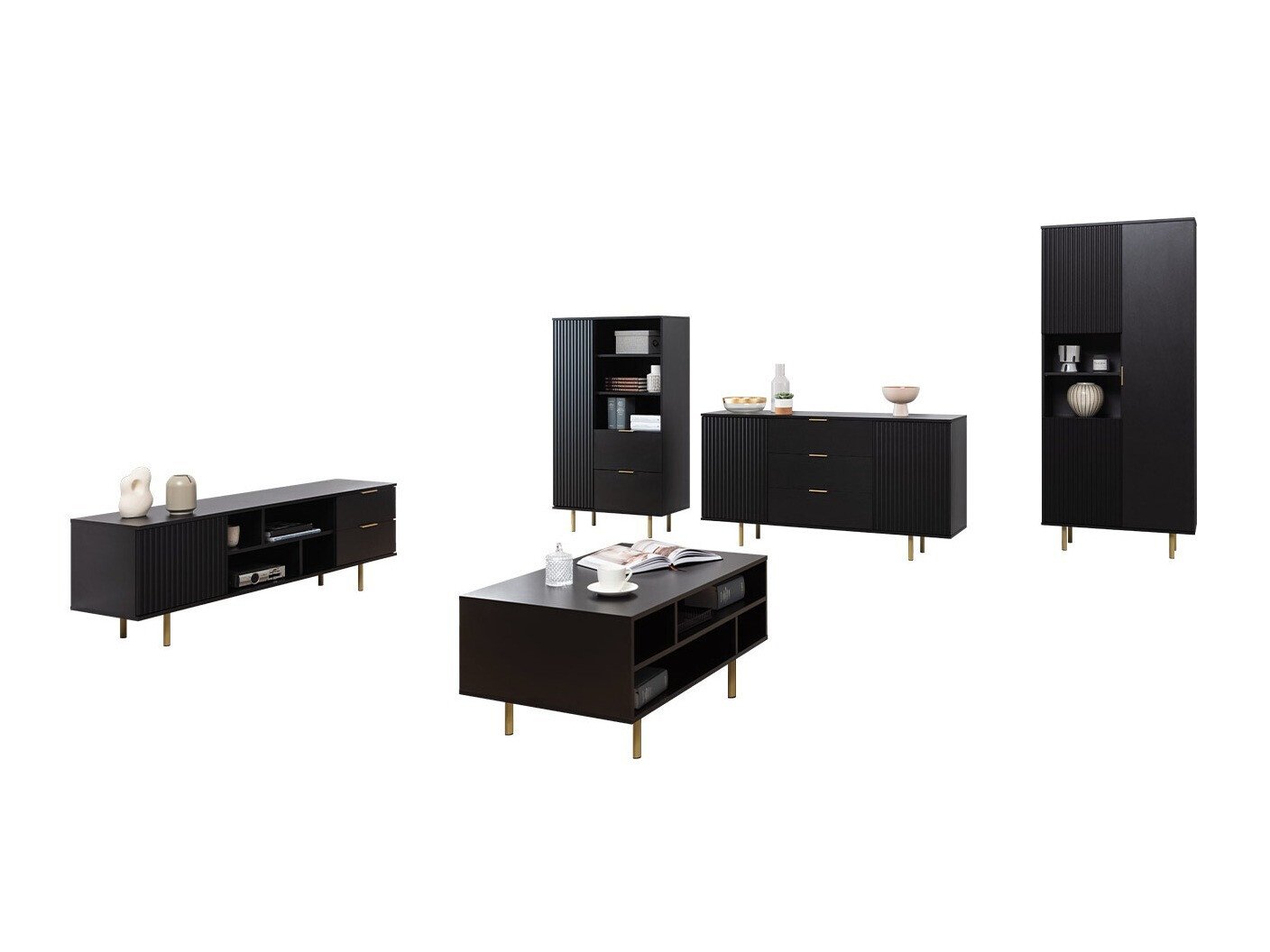 Dans la décoration d'intérieur, ce sont souvent les détails qui créent un sentiment d'unicité. Ces touches finales donnent du caractère à un espace et contribuent à transformer une maison en un foyer. Cette collection de meubles repose sur ce principe. Ici, l'élégance subtile est associée à une fonctionnalité réfléchie, ce qui vous permet de créer un look cohérent et harmonieux dans les différentes zones de la maison. Les finitions rainurées et en lattes ajoutent une touche d'authenticité au design, tandis que les poignées en métal doré et les fonctions discrètes d'ouverture par effleurement sur certaines pièces contribuent à maintenir une esthétique propre et unifiée. Les hauts pieds métalliques sont conçus pour accueillir des aspirateurs robots, et une combinaison de rangements ouverts et fermés permet de faciliter l'organisation de la vie. Cette collection s'intègre sans effort dans les intérieurs classiques modernes, devenant un accent subtil mais saisissant dans la maison.