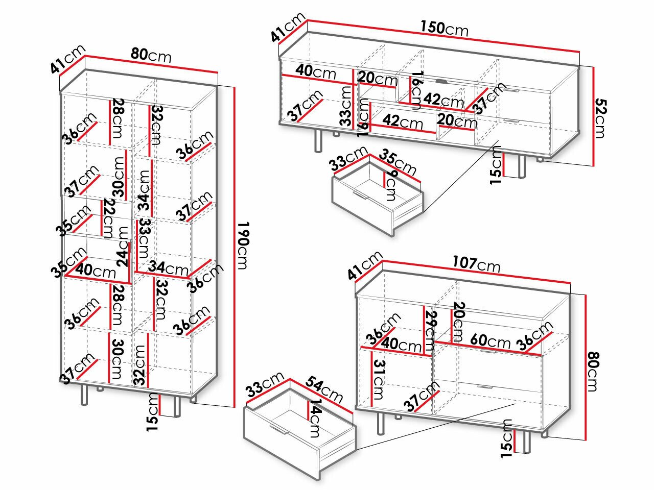 Informations sur la fixation au mur. Les meubles suspendus ou fixés au mur ne sont pas livrés avec des vis de fixation, vous devez donc vous en occuper individuellement. Les différents types de murs nécessitent des vis spécifiques, voire des profondeurs de perçage différentes. Choisissez le matériel de fixation en fonction du poids du meuble et du type de mur (cloison sèche, maçonnerie, bois, etc.). Pour garantir la qualité et la sécurité, utilisez des vis conçues spécifiquement pour votre type de mur.