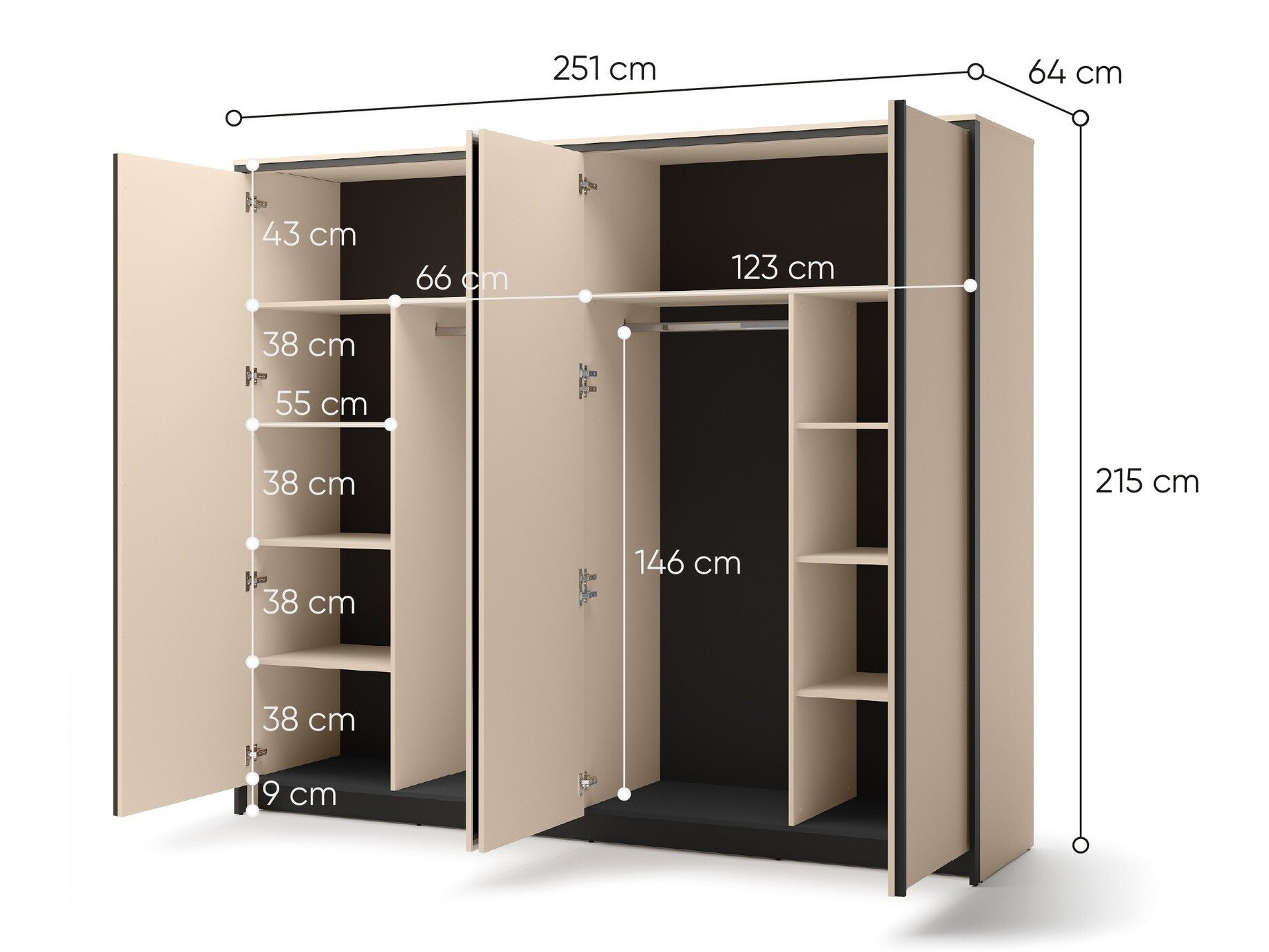 215 cm  250 cm  61 cm