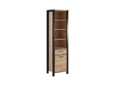 Cette collection est conçue pour les amateurs d'intérieurs industriels. Les poignées en métal sont combinées avec des façades de couleur chêne clair qui laissent apparaître des traces du grain du bois. La forme des poignées s'intègre parfaitement à l'ensemble du design. Les meubles sont mis en valeur par des bords noirs mats qui soulignent la silhouette stricte des meubles. L'une des principales caractéristiques de la collection est l'espace. Des sections de meubles extrêmement spacieuses feront en sorte que toutes les choses trouvent leur place. Cette collection vous permettra de créer une ambiance intérieure industrielle chez vous sans trop d'efforts. Créez une atmosphère encore plus chaleureuse chez vous en commandant en plus un éclairage LED.
