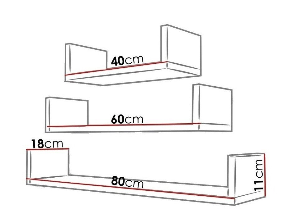 11 x 40 x 18; 11 x 60 x 18; 11 x 80 x 18 cm
