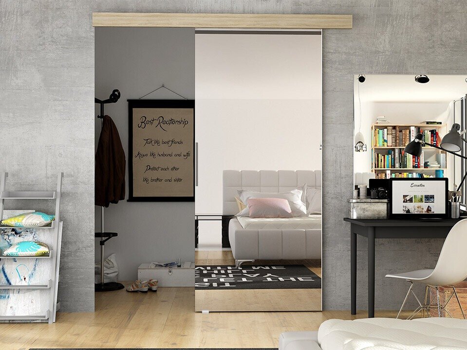 Une porte coulissante dotée de cette fonctionnalité peut être installée aussi bien en version à droite qu'en version à gauche. Chacun a des habitudes différentes, alors avant d'installer la porte, prenez un moment pour réfléchir quel côté vous conviendrait le mieux.