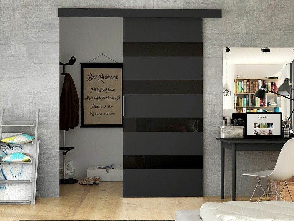 Une porte coulissante dotée de cette fonctionnalité peut être installée aussi bien en version à droite qu'en version à gauche. Chacun a des habitudes différentes, alors avant d'installer la porte, prenez un moment pour réfléchir quel côté vous conviendrait le mieux.