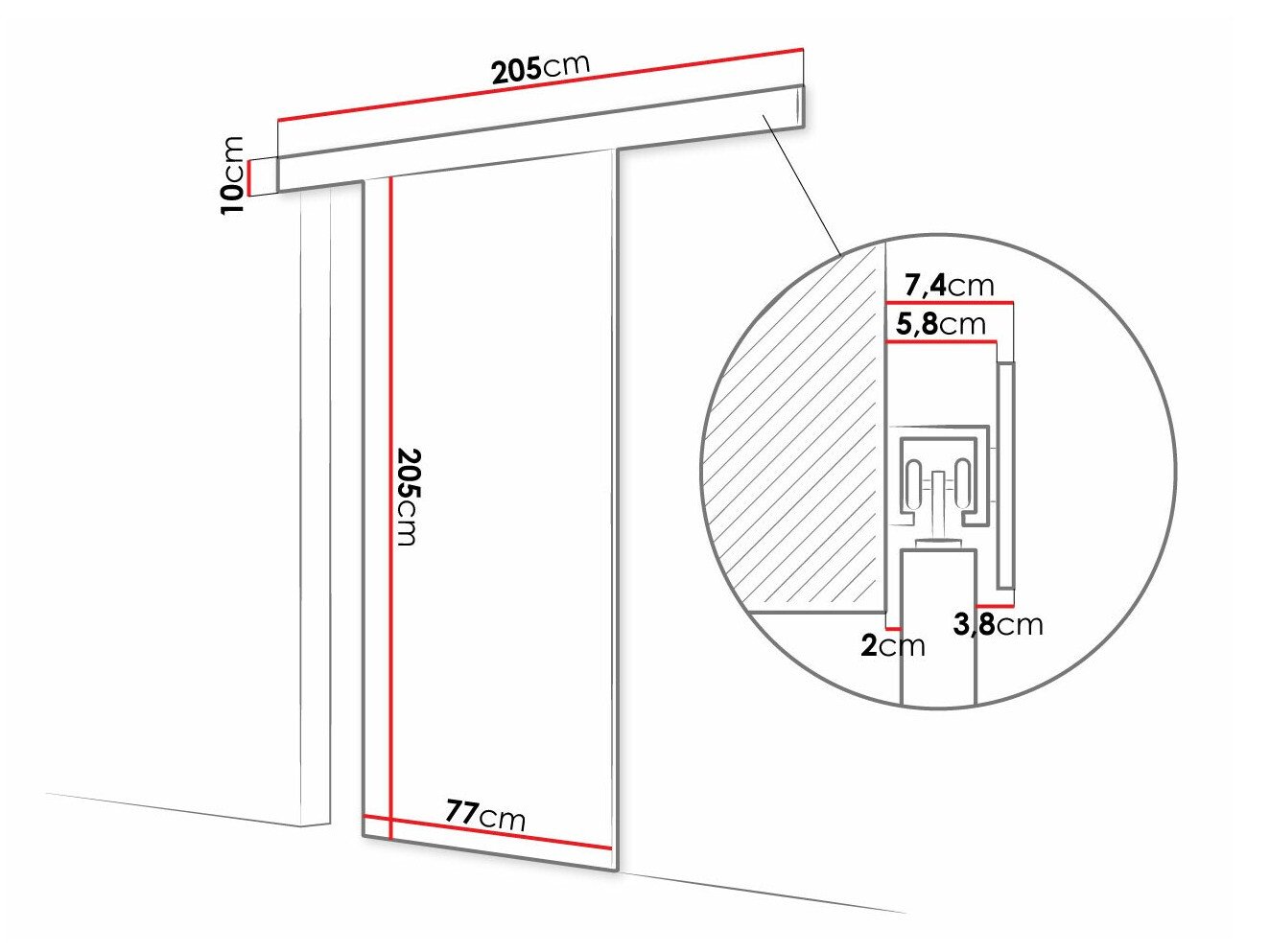 Il est important de bien fixer la porte coulissante. Ce type de porte n'est pas livré avec des vis de fixation, vous devrez donc vous en occuper vous-même. Chaque mur nécessite un type de vis différent ou même une profondeur de perçage différente. Choisissez les vis de fixation en fonction du poids de la porte et du type de murs : maçonnerie, bois, etc.