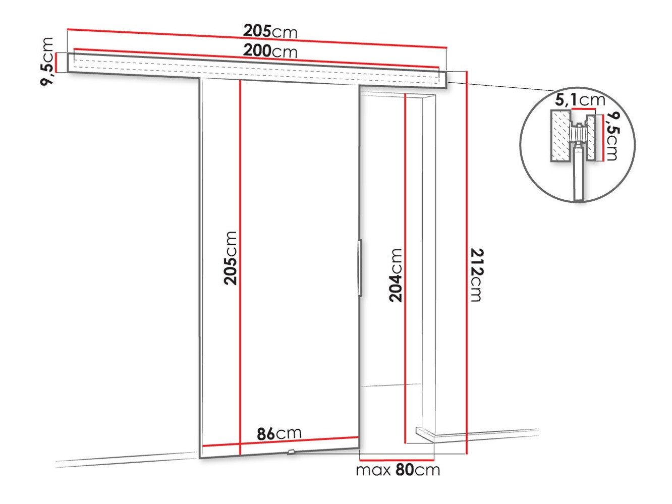 Dimensions du système de portes coulissantes: