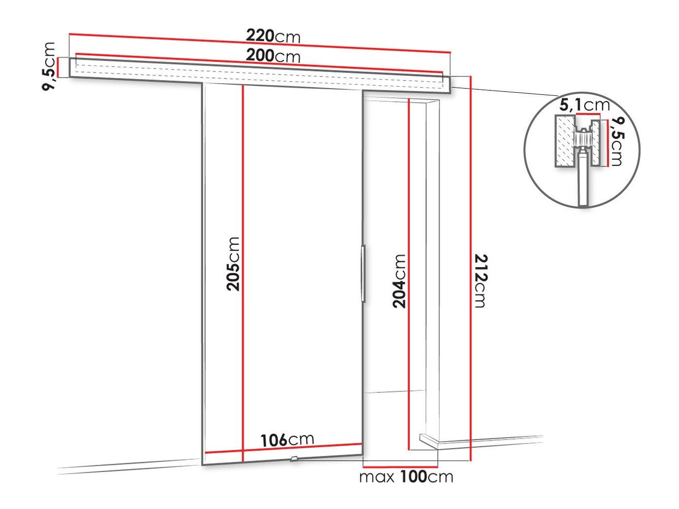 Il est important de bien fixer la porte coulissante. Ce type de porte n'est pas livré avec des vis de fixation, vous devrez donc vous en occuper vous-même. Chaque mur nécessite un type de vis différent ou même une profondeur de perçage différente. Choisissez les vis de fixation en fonction du poids de la porte et du type de murs : maçonnerie, bois, etc.